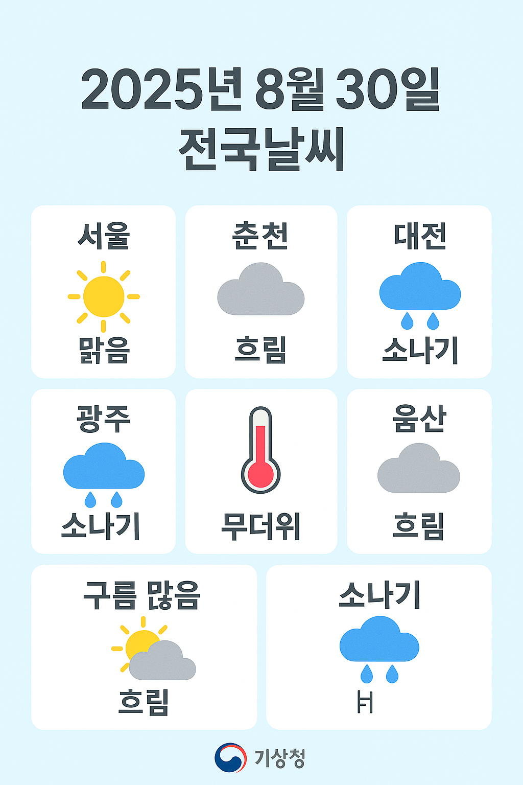 ☀️ 2025년 8월 30일 전국날씨