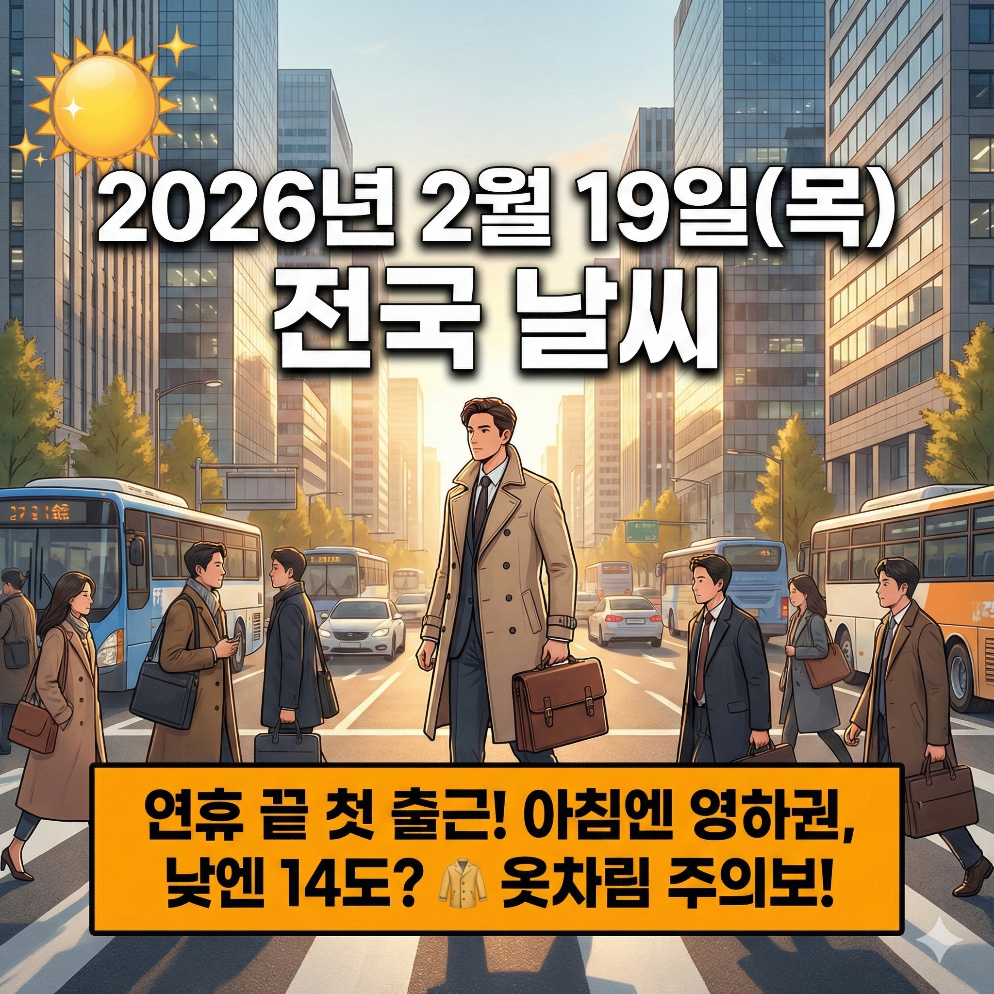 ☀️ 2026년 2월 19일 목요일 전국 날씨 예보
