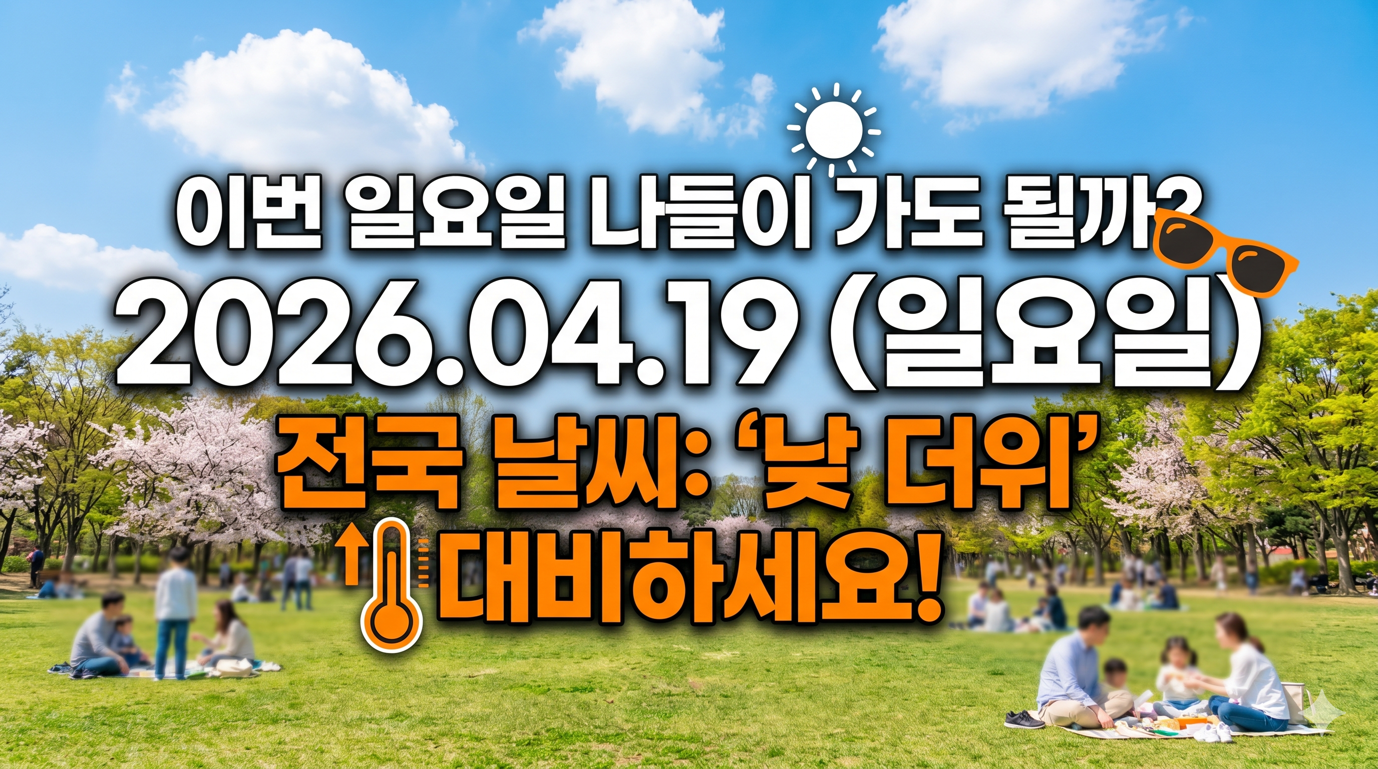 즐거운 주말 보내고 계시나요? 일요일인 2026년 4월 19일은 전국이 고기압의 영향권에 들어 아주 화창한 하늘을 보여줄 예정입니다. 기상청 날씨누리와 케이웨더의 데이터를 종합해 보니, 주말 마무리 나들이를 계획하시는 분들에게는 최적의 날씨가 될 것 같아요! 😊