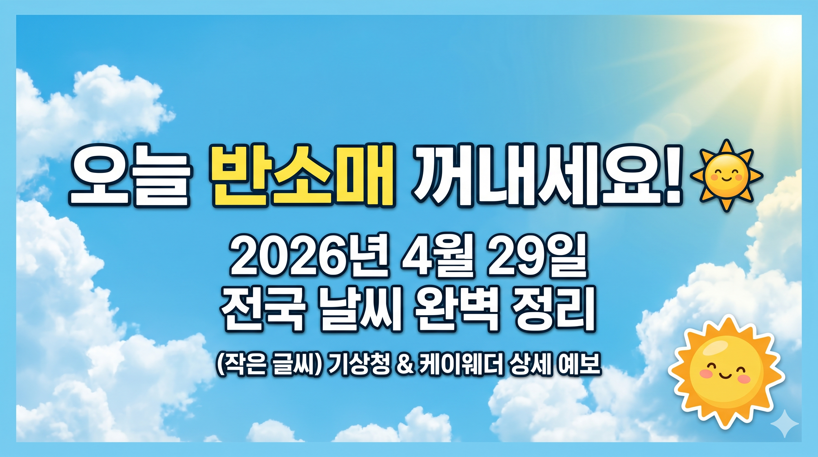 여러분, 안녕하세요! 2026년 4월 29일은 그야말로 환상적인 봄날이 될 예정입니다. 기상청 날씨누리와 케이웨더 예보를 종합해 보면, 전국이 대체로 맑은 가운데 평년보다 포근한 기온을 보이겠습니다.