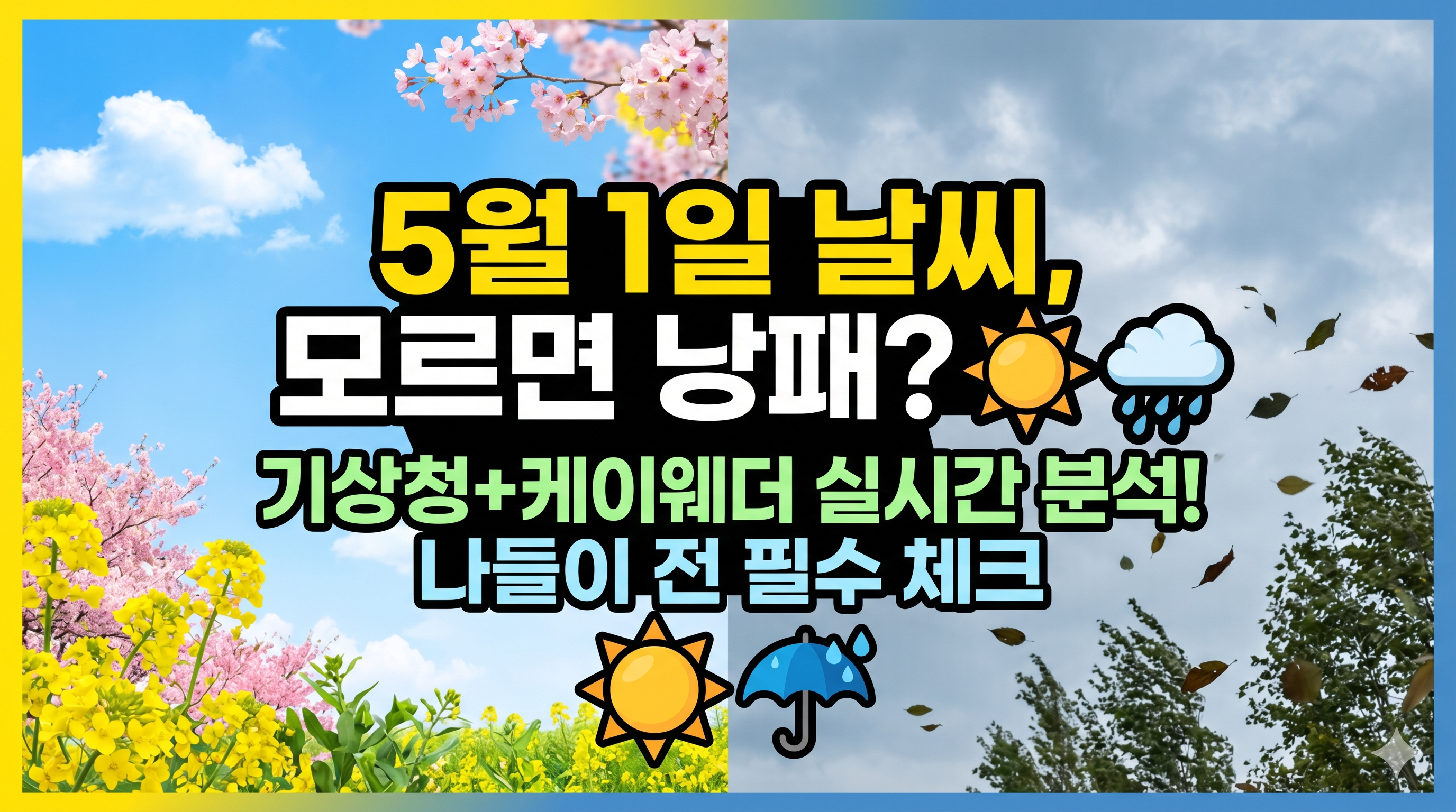 안녕하세요! 5월의 첫날이자 근로자의 날인 오늘, 나들이 계획 세우시는 분들 많으시죠? 기상청 날씨누리와 케이웨더의 최신 데이터를 바탕으로 분석한 결과, 오늘은 전형적인 늦봄 날씨를 보이겠습니다.