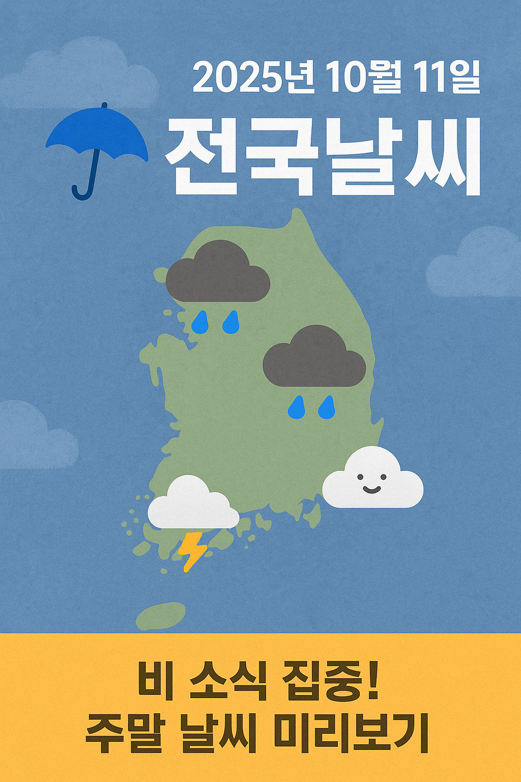 - 2025년 10월 11일(토), 전국 흐림/비 예보