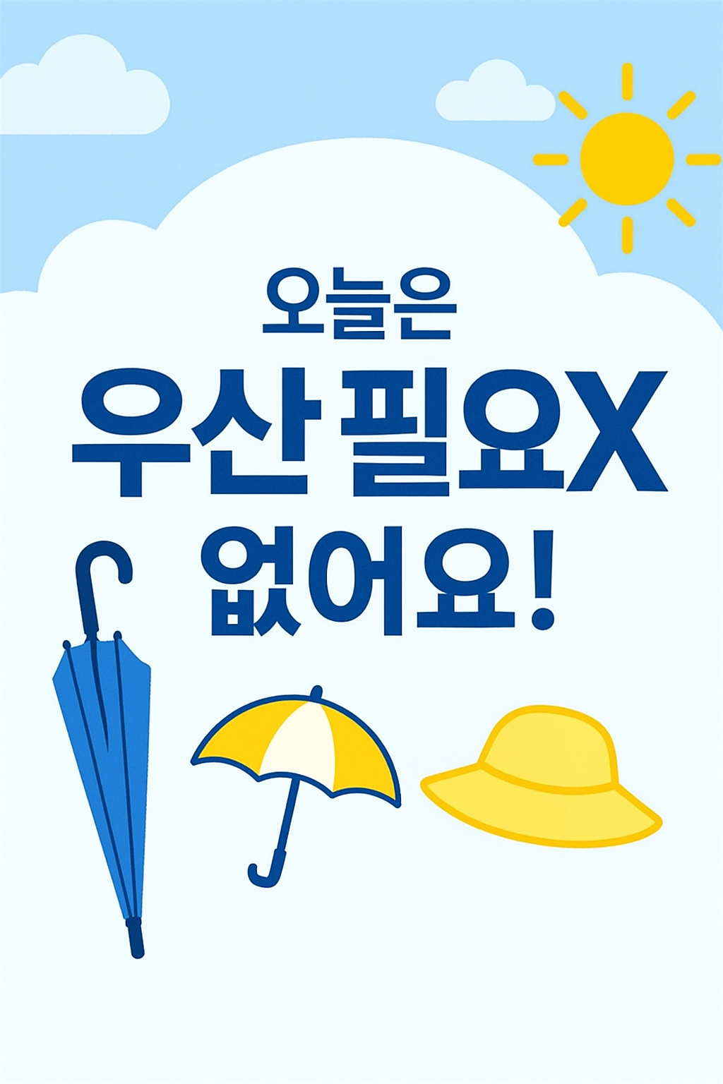 - 오늘은 전국적으로 비 소식이 거의 없으니, 우산은 잠시 쉬어도 좋겠어요!