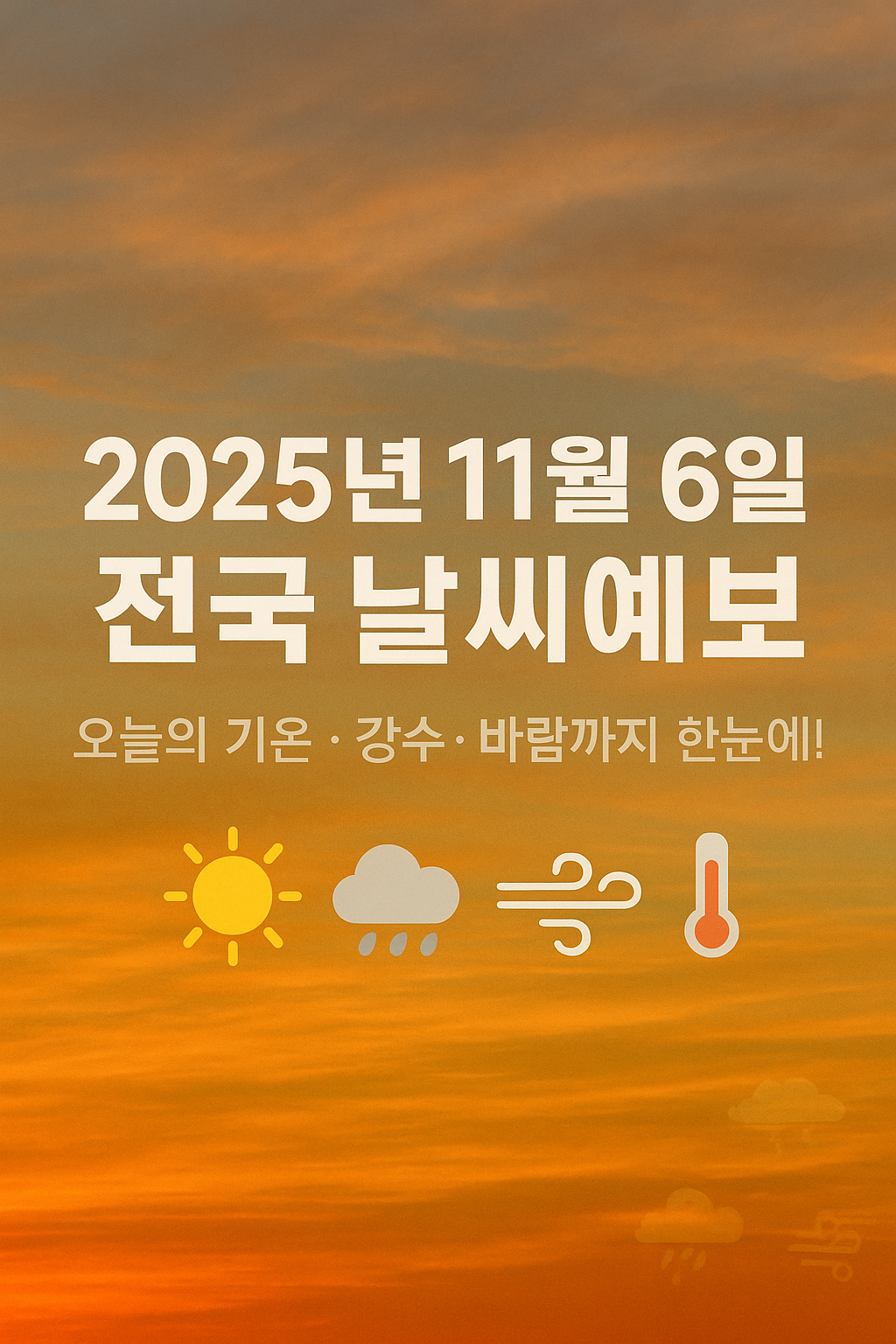 안녕하세요! 오늘은 2025년 11월 6일 전국의 날씨를 함께 살펴보겠습니다. 최근 늦가을의 기온 변화가 크기 때문에 미리 확인하고 나가면 든든해요.