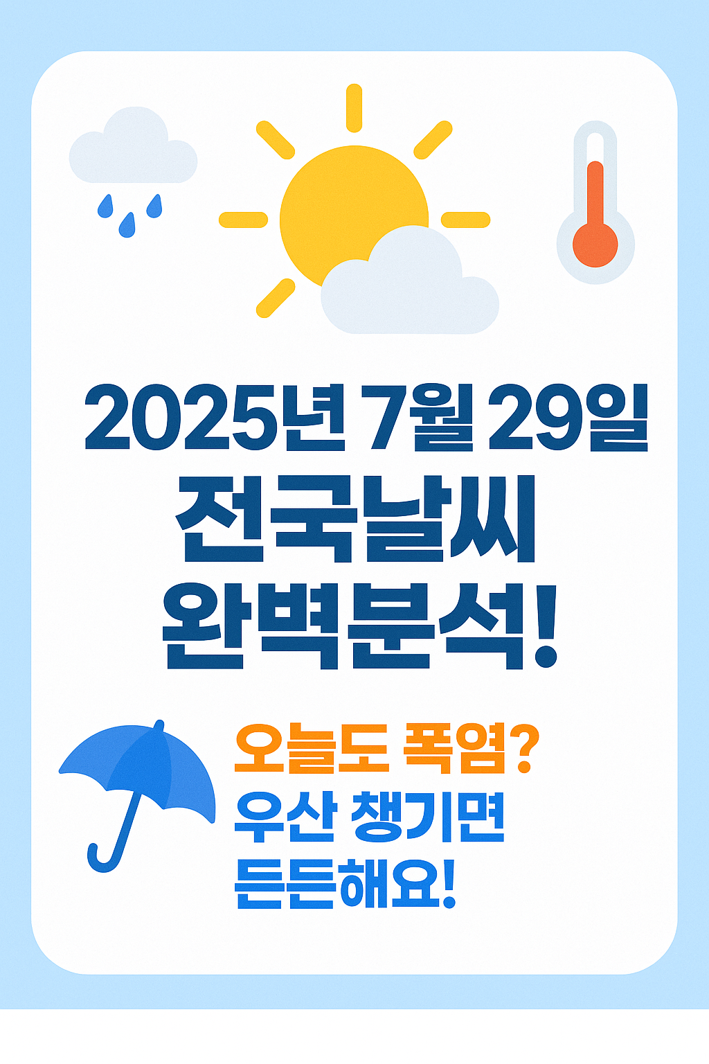 ⛅️ 2025년 7월29일 전국 날씨 완벽 분석! 오늘도 폭염? 우산 챙기면 든든해요! 🌂