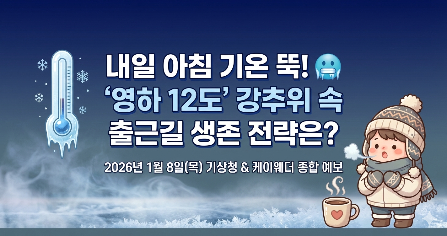 2026년 1월 8일 목요일은 강력한 찬 공기가 남하하면서 본격적인 겨울 한파가 기승을 부릴 예정입니다. 기상청 날씨누리와 케이웨더의 데이터를 꼼꼼히 분석해 정리해 드릴게요!