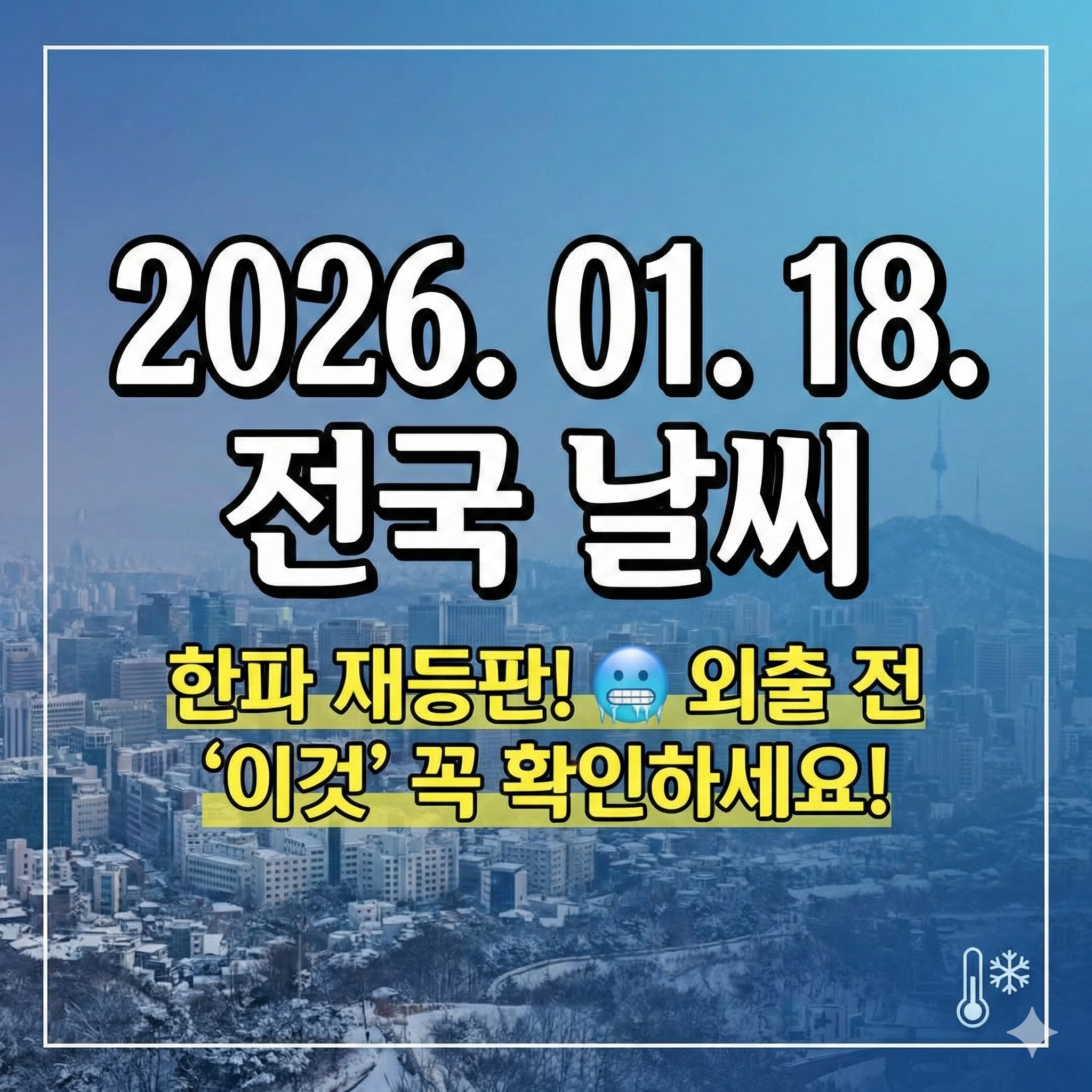 안녕하세요! 여러분의 따뜻한 주말을 책임질 날씨 알림이입니다. 🙋♂️ 기상청 날씨누리와 케이웨더 예보를 종합해 보면, 2026년 1월 18일 일요일은 전국이 대체로 맑은 하늘을 보이겠으나, 북서쪽에서 찬 공기가 유입되면서 다시 기온이 영하권으로 뚝 떨어지겠습니다.
