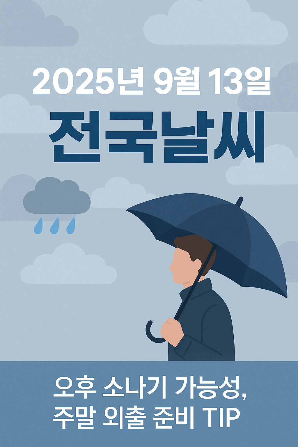 🌂 2025년 9월13일 전국날씨 | 오후 소나기 가능성… 주말 앞둔 외출 준비Tip