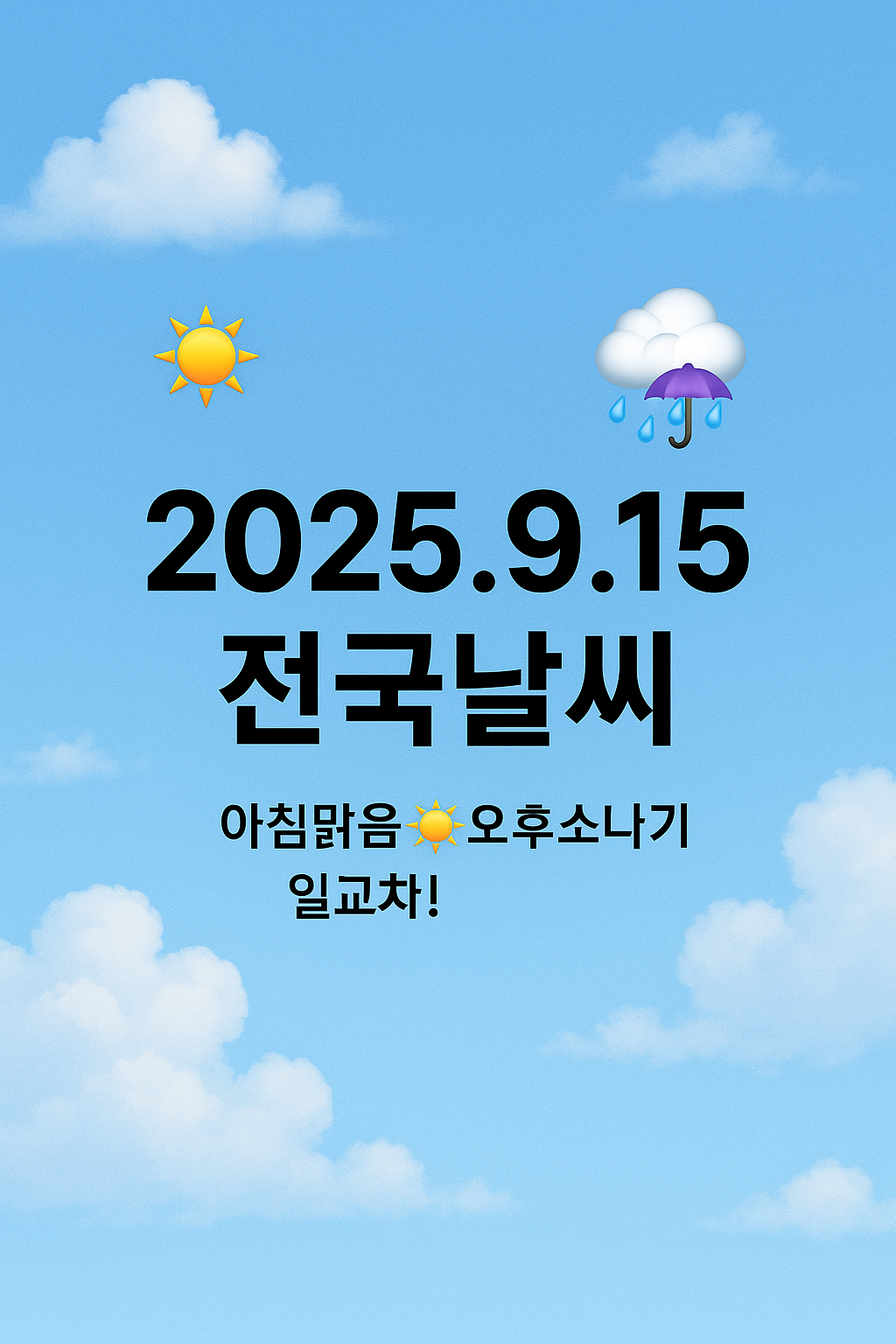 2025년 9월 15일 전국날씨 🌤️🌂