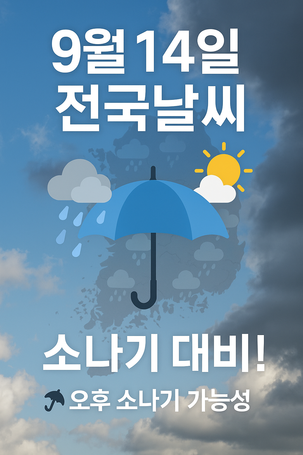 🌂 2025년 9월14일 전국날씨 | 오후 소나기 가능성… 주말 앞둔 외출 준비Tip