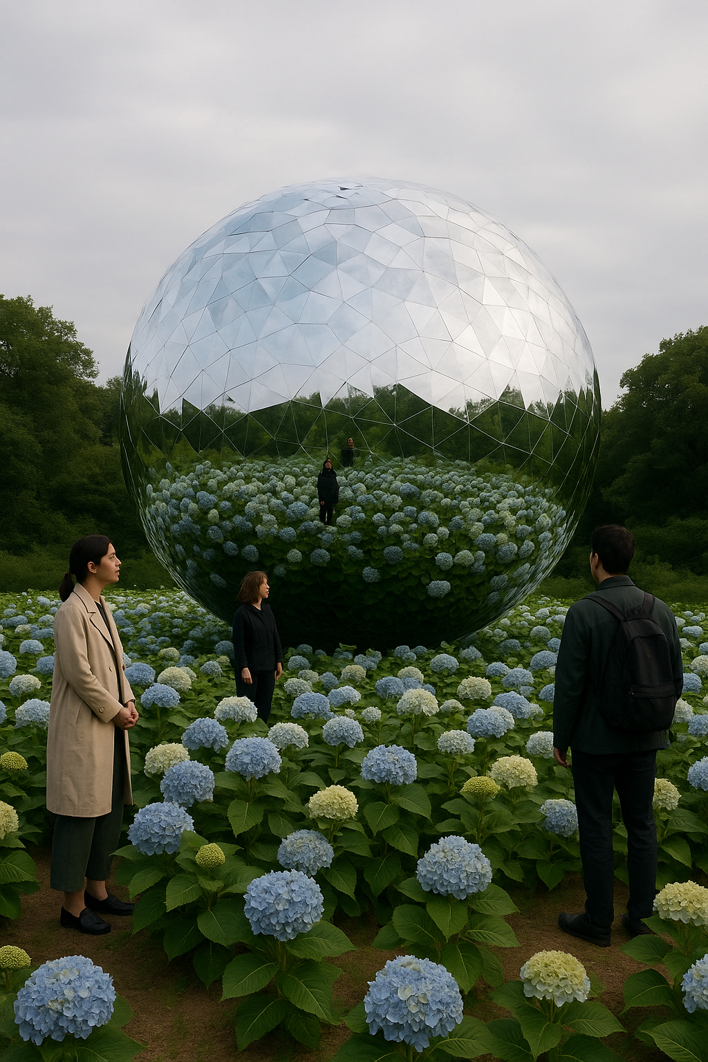 수국과 현대미술이 어우러진 이 공간은 축제의 하이라이트로, 사진과 감상의 명소입니다.