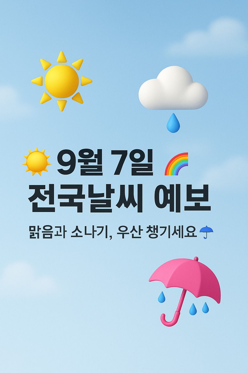 🌞 9월 7일 전국날씨 예보🌈|맑음과 소나기, 미리 챙기는 우산과 옷차림 ☔