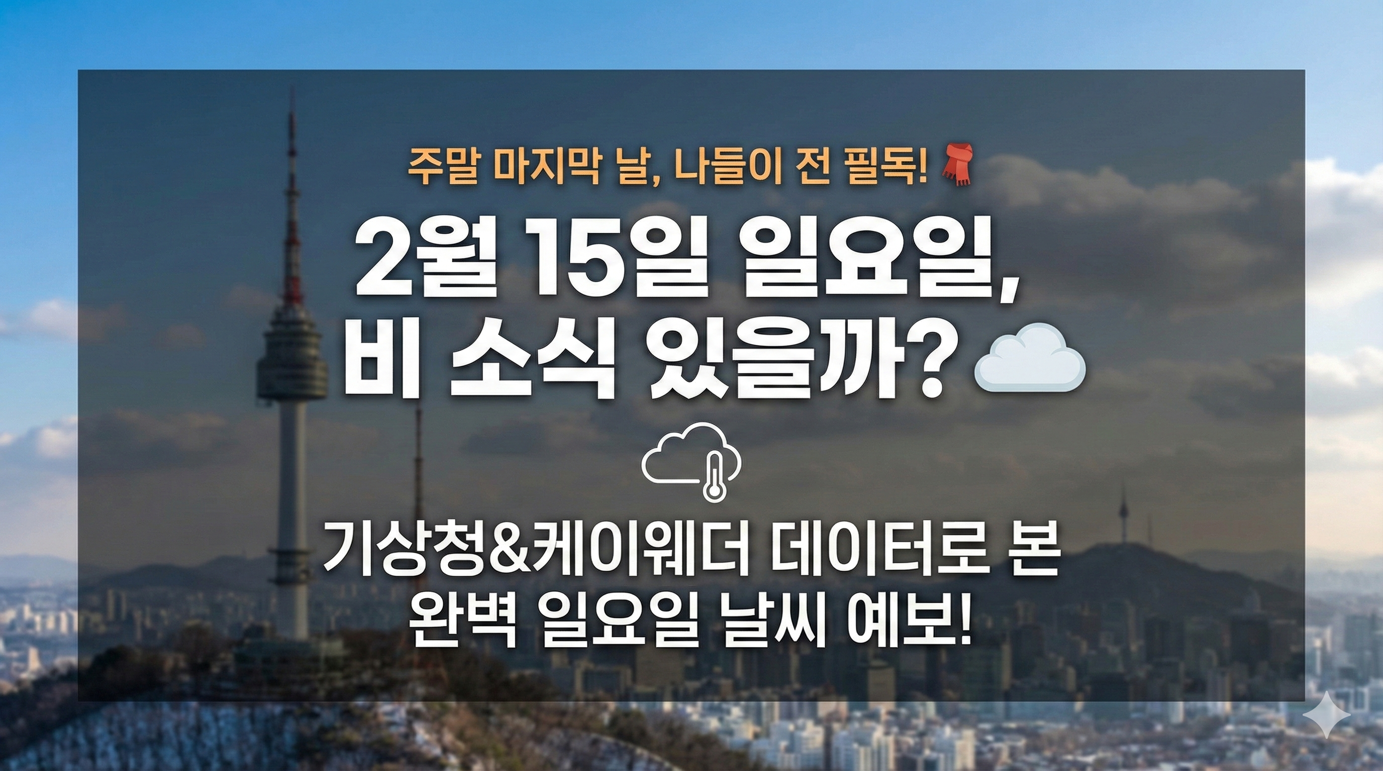 안녕하세요! 주말의 마지막 날인 2026년 2월 15일 일요일, 여러분의 소중한 휴일을 위해 기상청 날씨누리와 케이웨더의 최신 데이터를 바탕으로 상세한 날씨 정보를 정리해 드립니다. 어제 발렌타인데이는 잘 보내셨나요? 오늘은 연인, 가족과 함께 야외 활동을 계획 중인 분들이 많으실 텐데, 하늘 상태와 기온 변화를 미리 체크하는 것이 필수입니다!