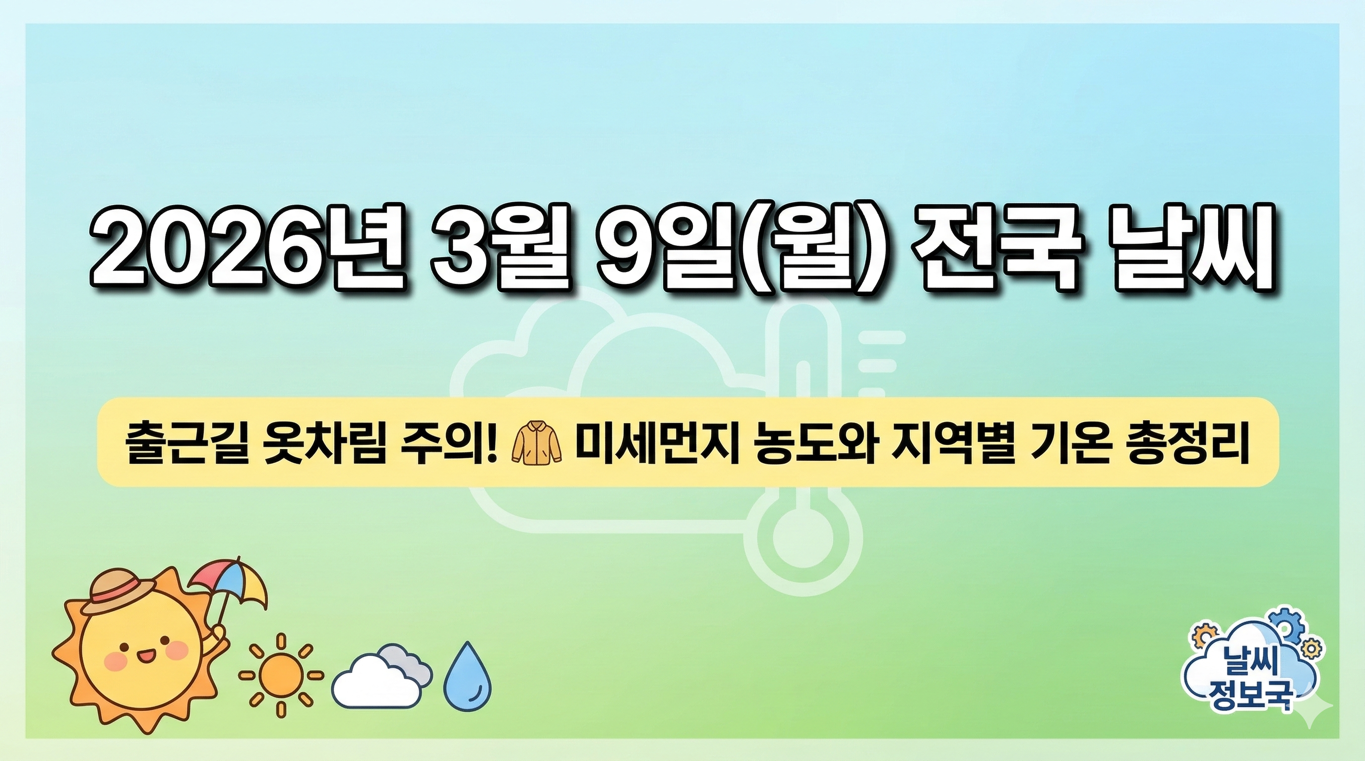 | 1. 🌤️ 2026년 3월 9일 전국 날씨 총평 |