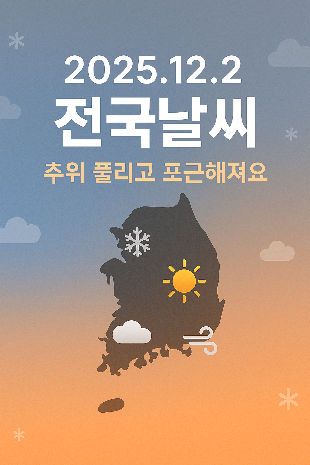 2025년 12월 2일 전국날씨, 포근함이 슬슬 돌아와!