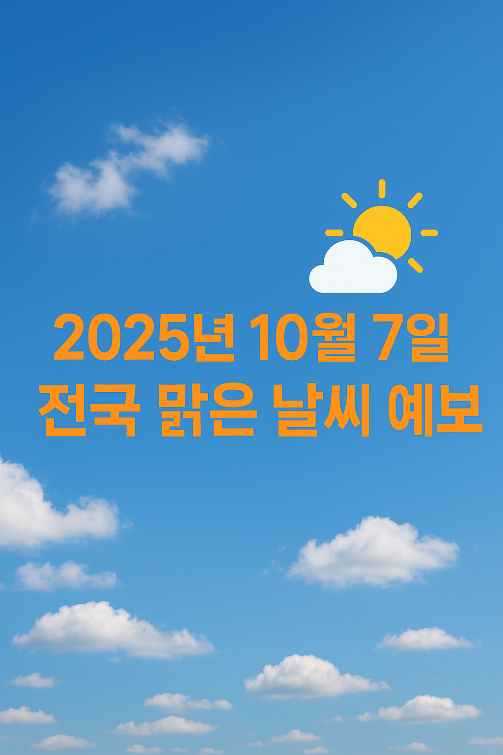 2025년 10월 7일, 대한민국 전국은 대체로 맑은 날씨가 예상됩니다. 중부부터 남부 지방까지 대체로 맑고 쾌청한 하루가 될 전망이에요.