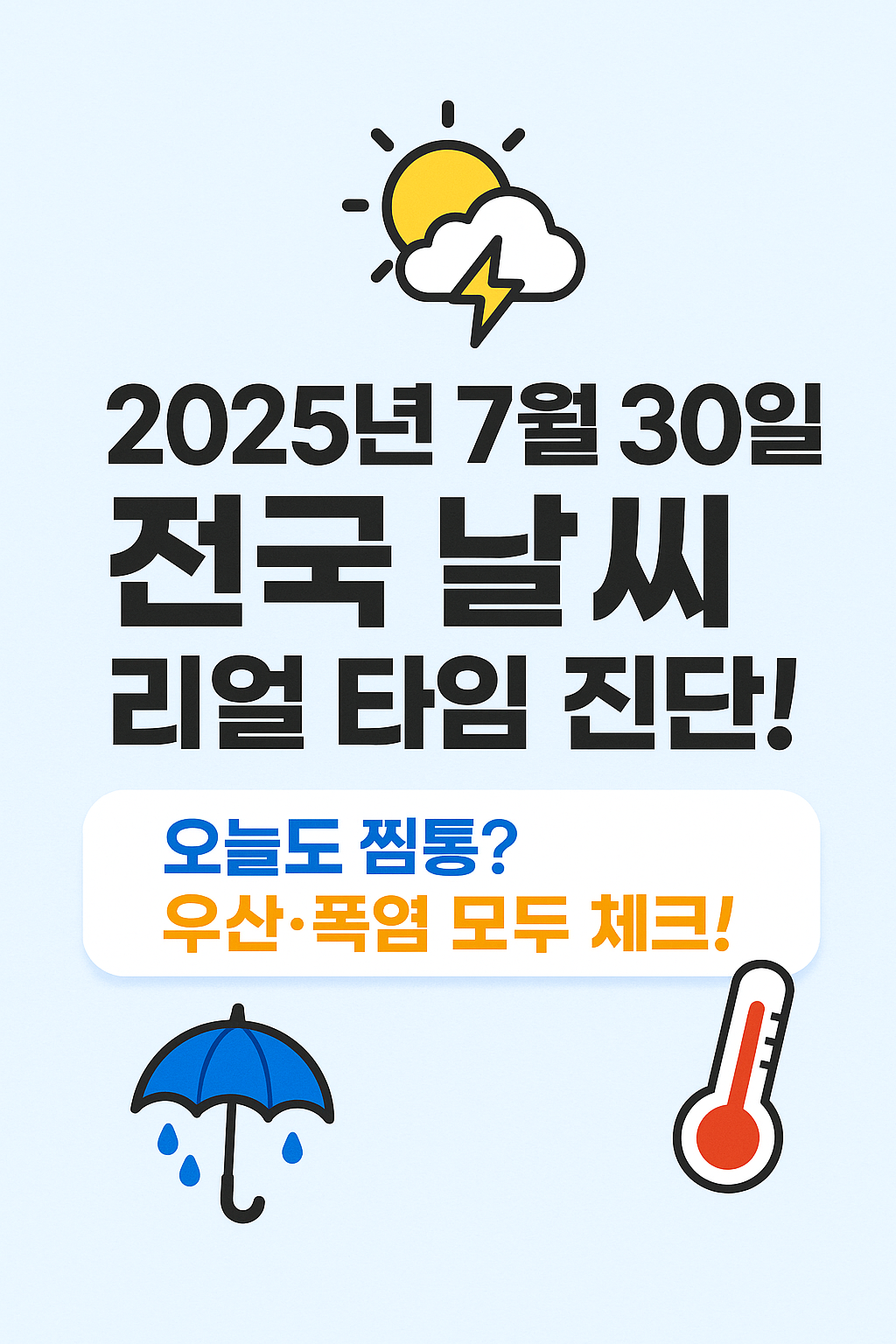 🌤️ 2025년 7월30일 전국 날씨 리얼 타임 진단! 오늘도 찜통? 우산·폭염 모두 체크하세요! 🌦️