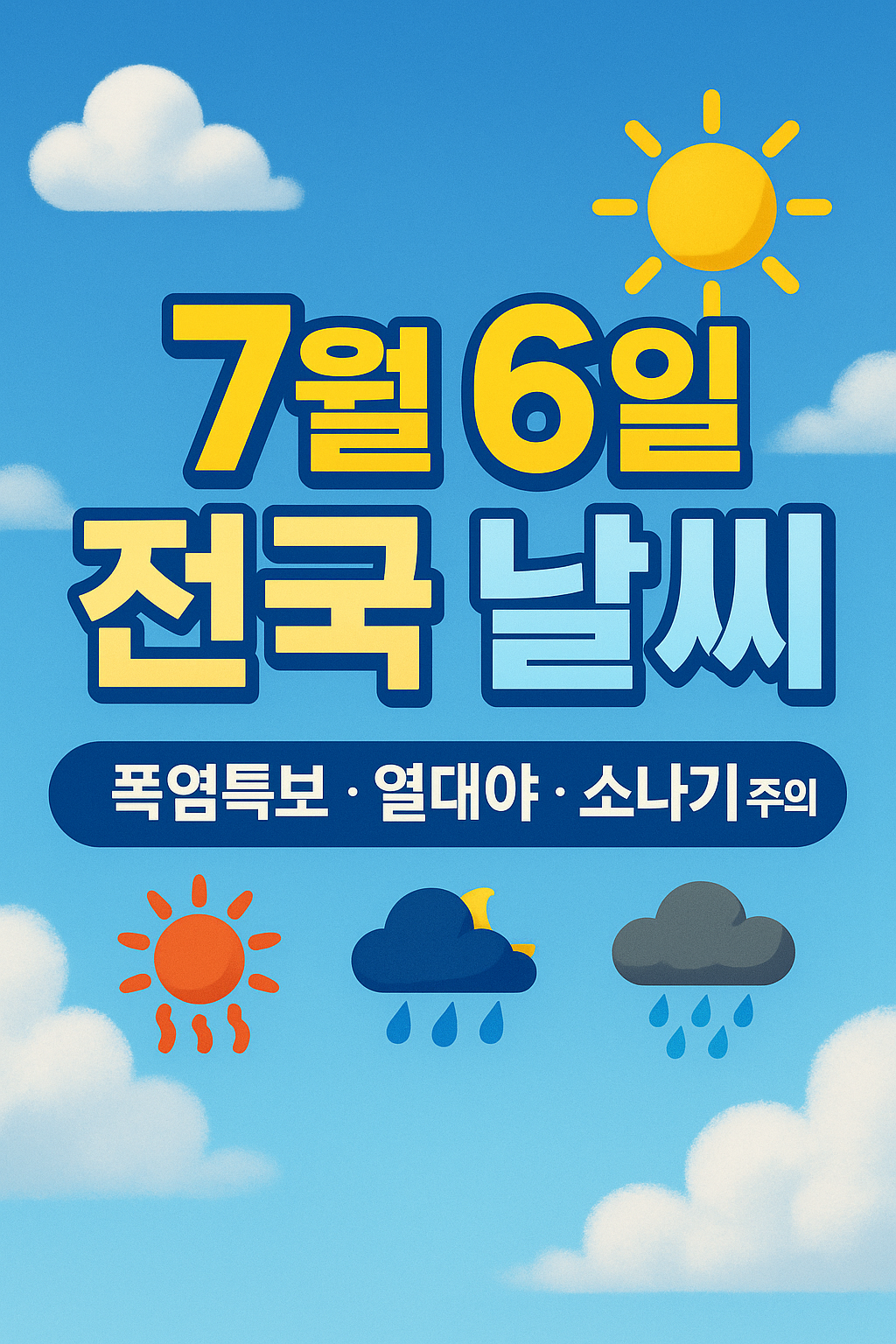 🌤️ 7월 6일 전국 날씨 완벽 정복! 오늘의 기상 변화와 꿀팁까지 한눈에 확인하세요! 🌈 |