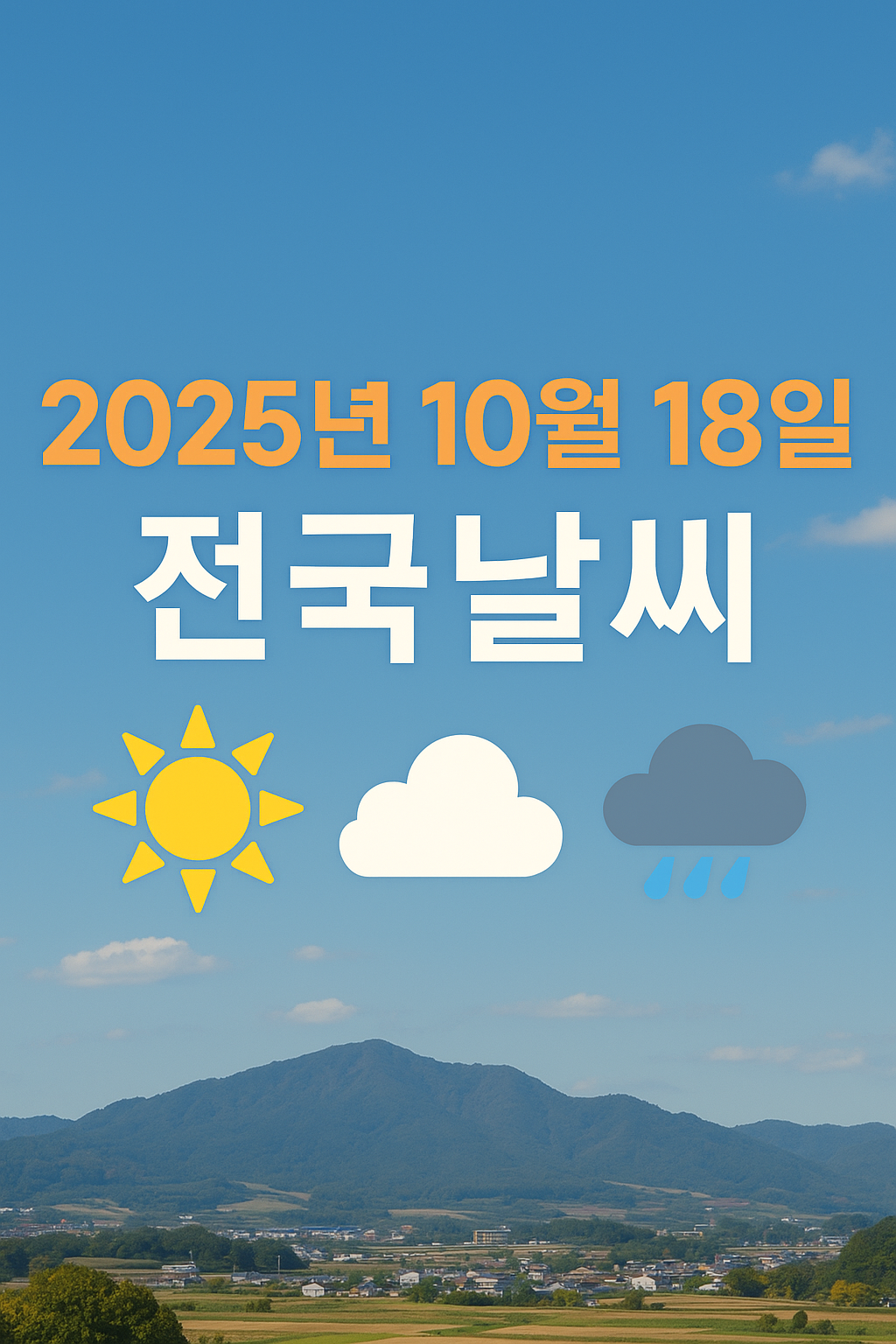 2025년 10월 18일은 전국적으로 맑고 청명한 가을 날씨가 예상되며, 기온도 평년보다 다소 높은 편입니다.
