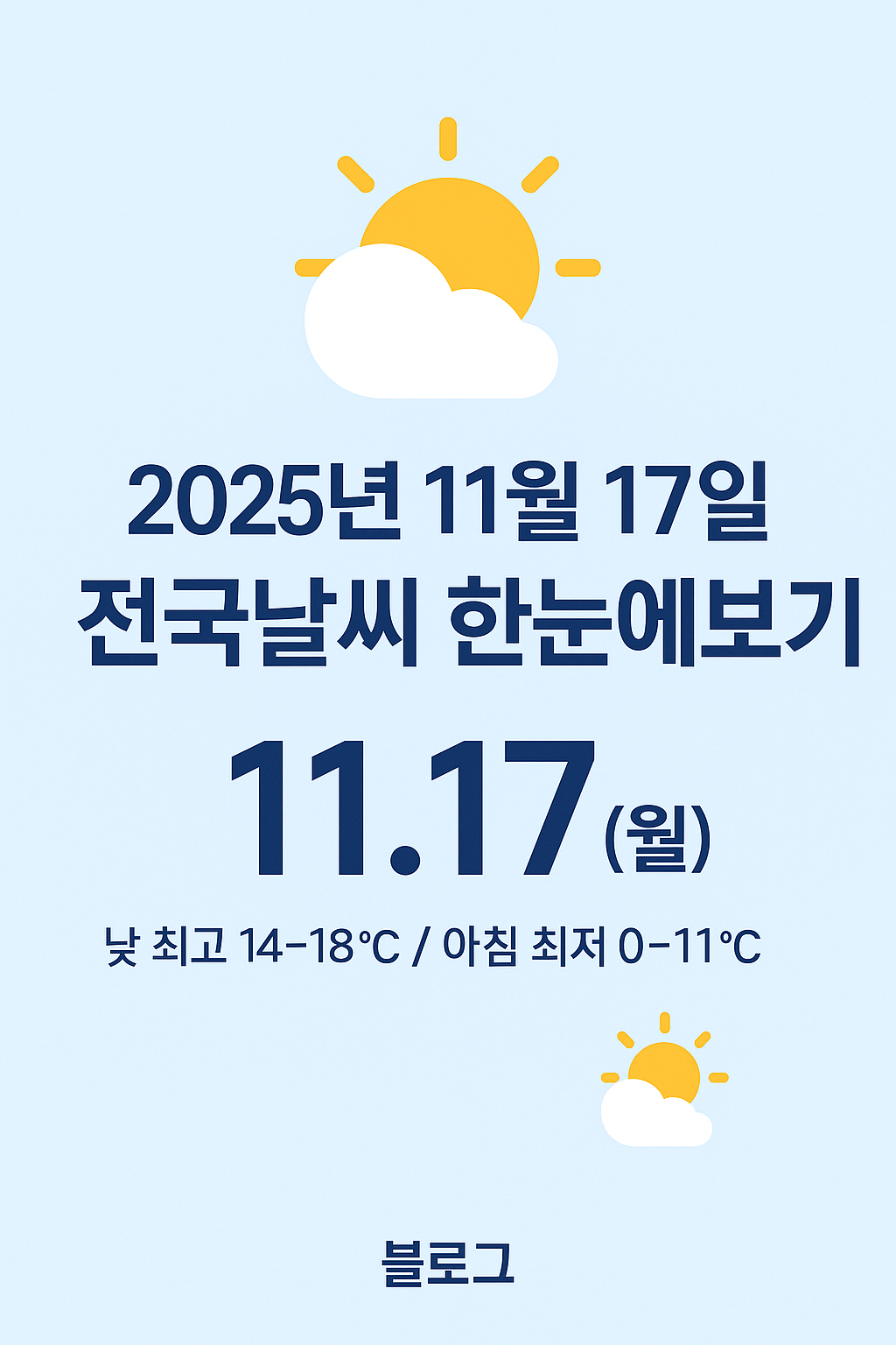 안녕하세요! 😊 11월 17일(월) 전국 **날씨예보**를 쉽게 정리해드릴게요.