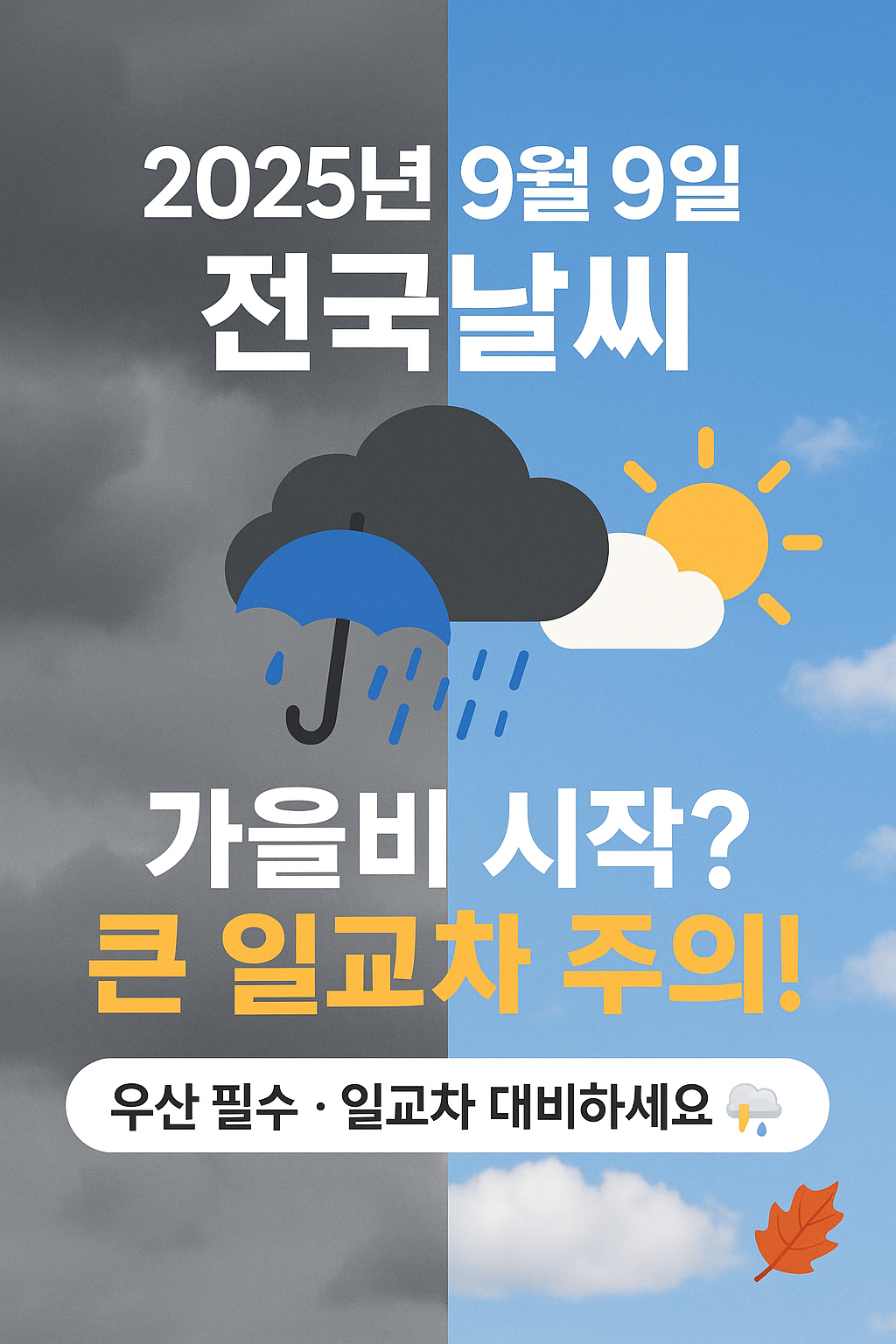 🌦️ 2025년 9월9일 전국날씨 ☔ 가을비 시작? 큰 일교차와 우산 챙김 필수!