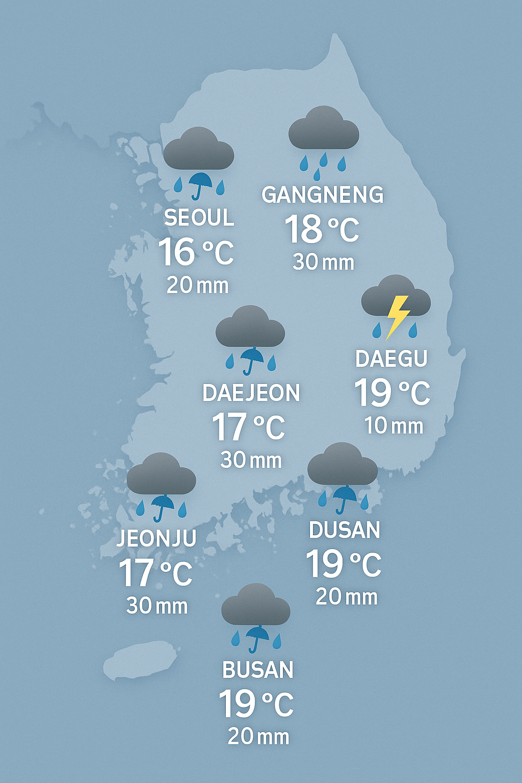 - 남부·제주: 장마전선 북상, 강한 비 집중, 호우특보 가능성