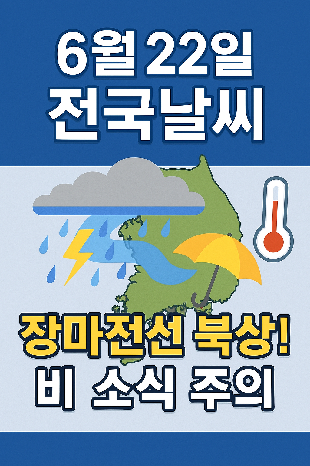 🌦️ 6월 22일 전국날씨 한눈에! 장마전선 북상, 비 소식과 기온 변화 완벽 정리!