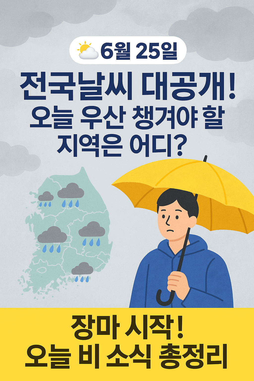 🌦️ 6월 25일 전국날씨 대공개! 오늘 우산 챙겨야 할 지역은 어디?