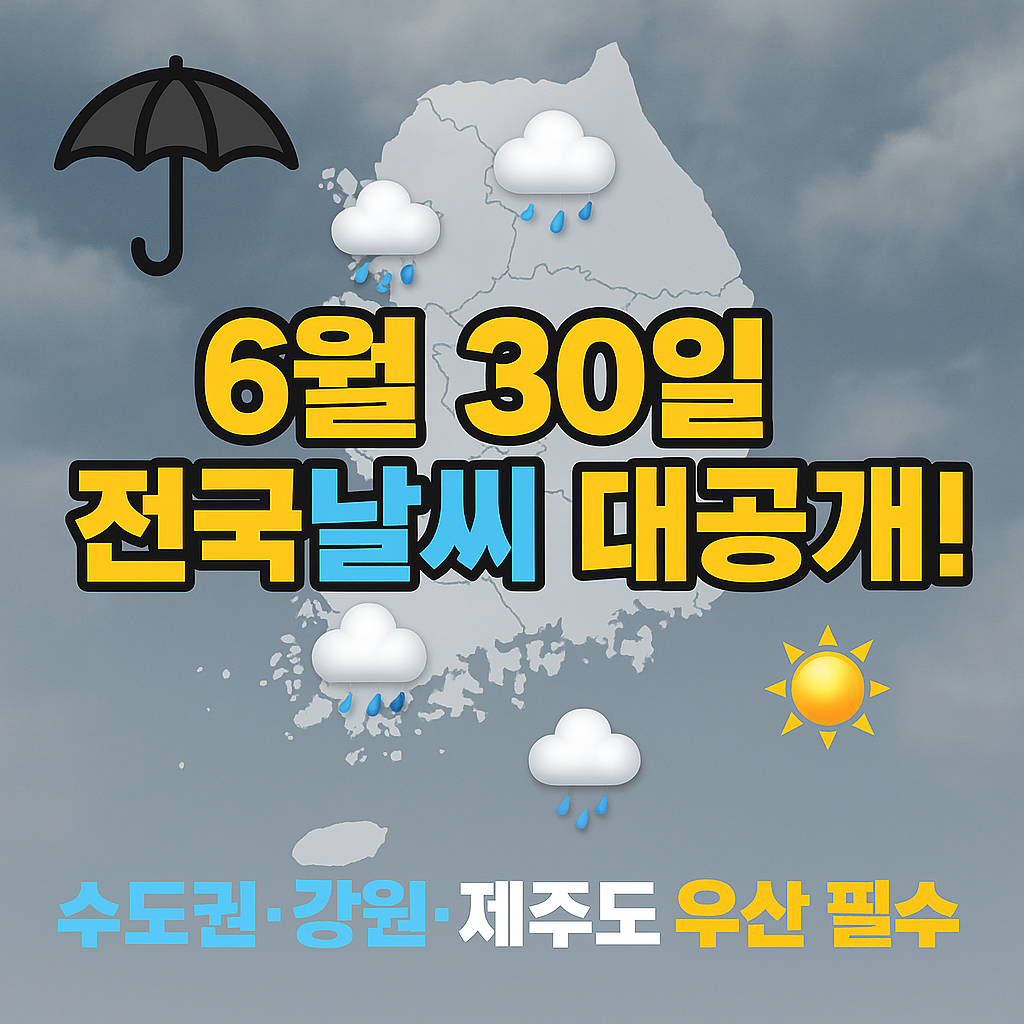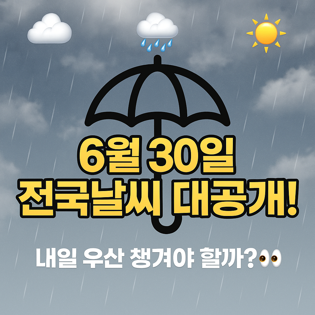 🌦️ 6월 30일 전국날씨 대공개! 내일 우산 챙겨야 할까?👀