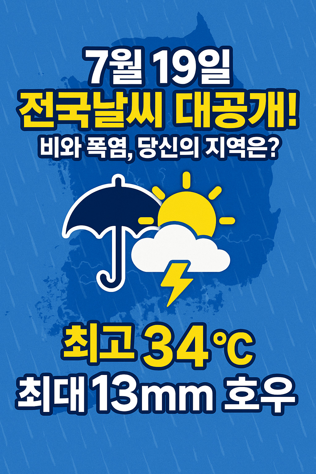 🌦️ 7월 19일 전국날씨 대공개! 오늘 나들이 괜찮을까? 집중호우 혹은 폭염, 당신의 지역은? ☔🌞