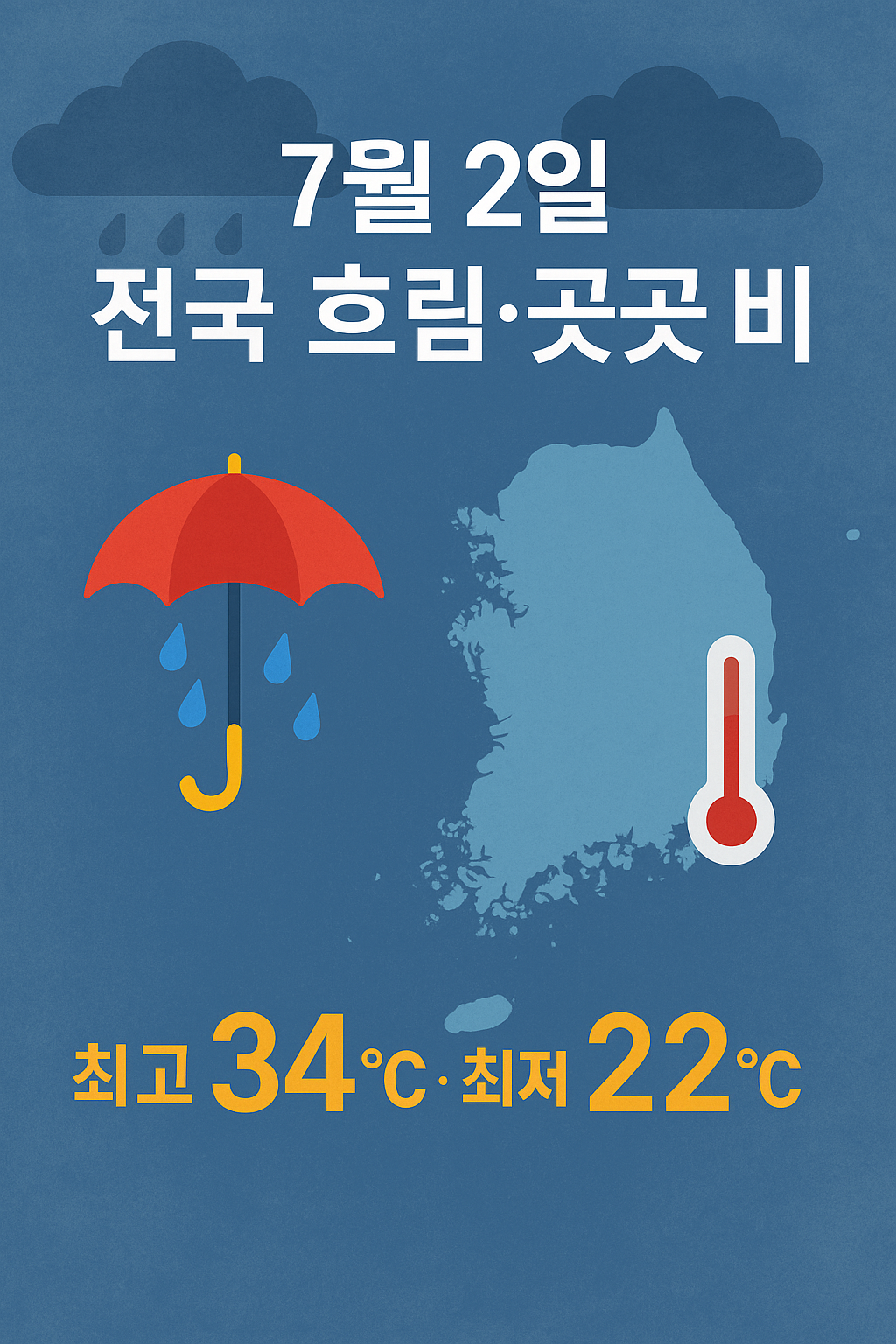 🌦️ 7월 2일 전국날씨 대공개! 오늘 우산 챙길까? 내일 하늘이 알려준다!