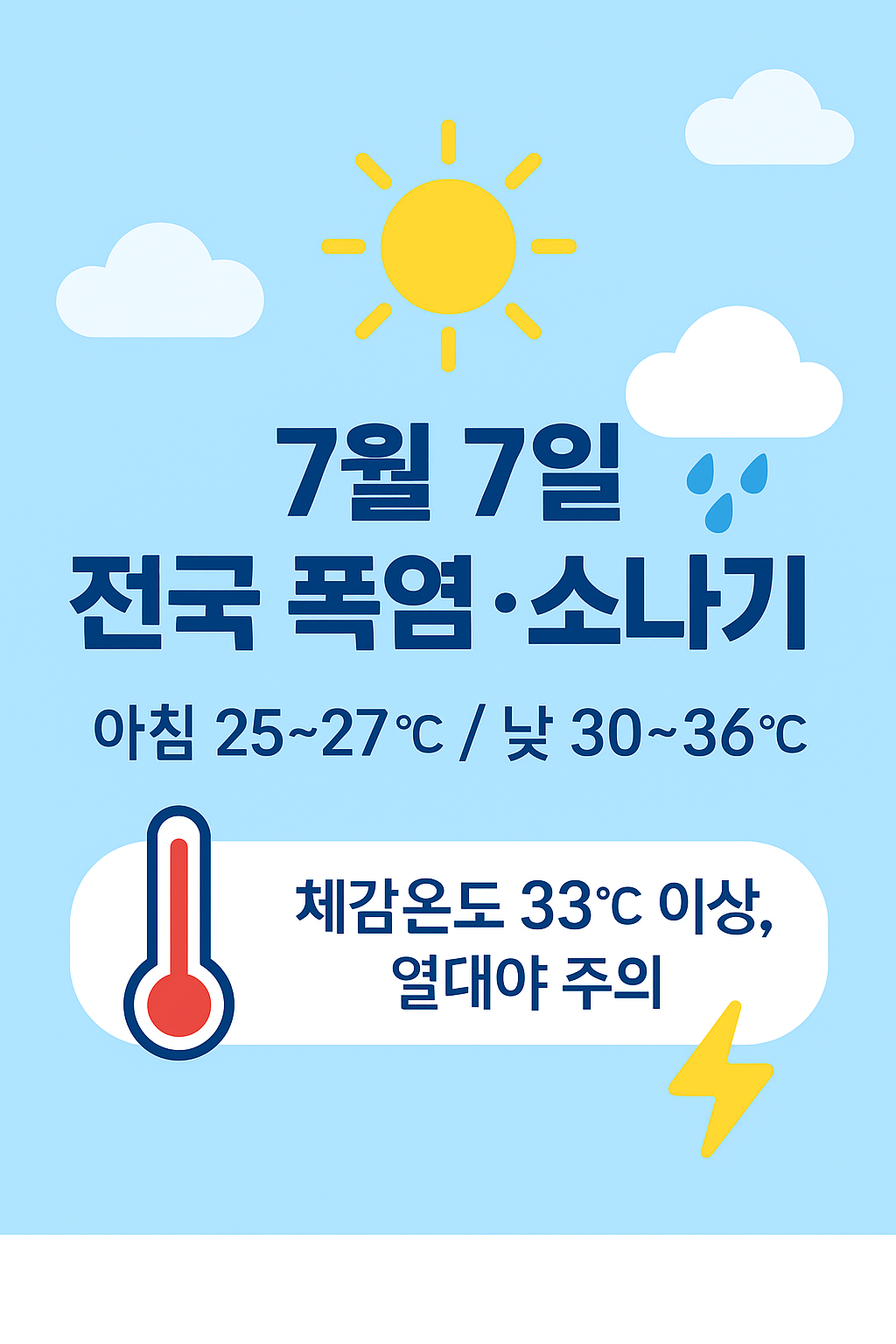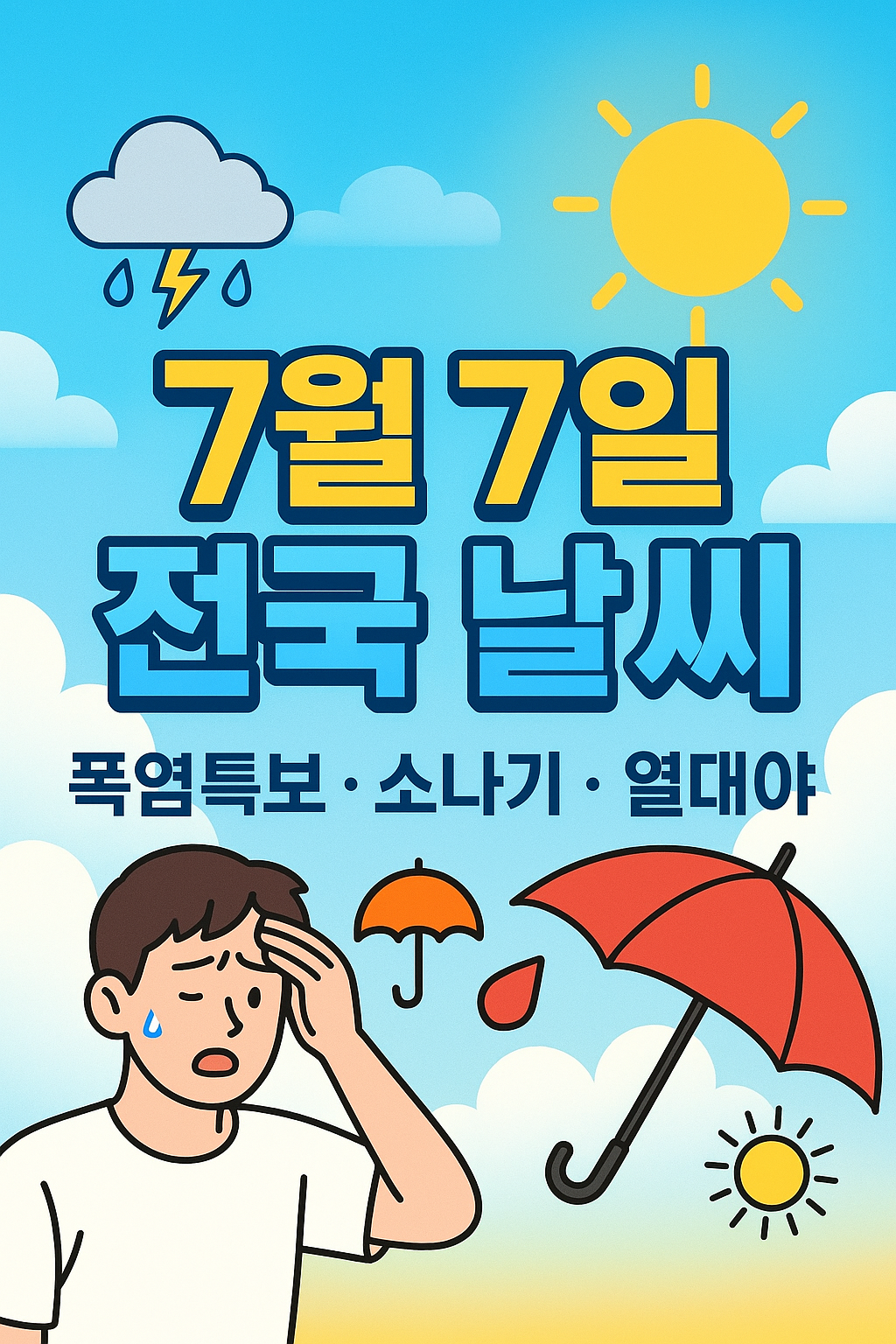 🌦️ 7월 7일 전국 날씨 대공개! 폭염·소나기·열대야, 이번 주 시작은 어떻게? 필수 꿀팁까지 한눈에! ☔ |