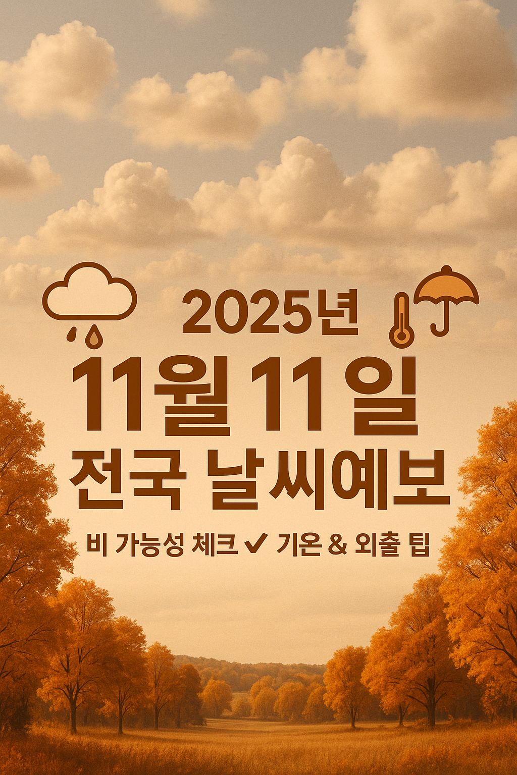 2025년 11월 1일은 가을다운 선선한 날씨 속, 새벽 비 + 오후 맑음 패턴입니다.