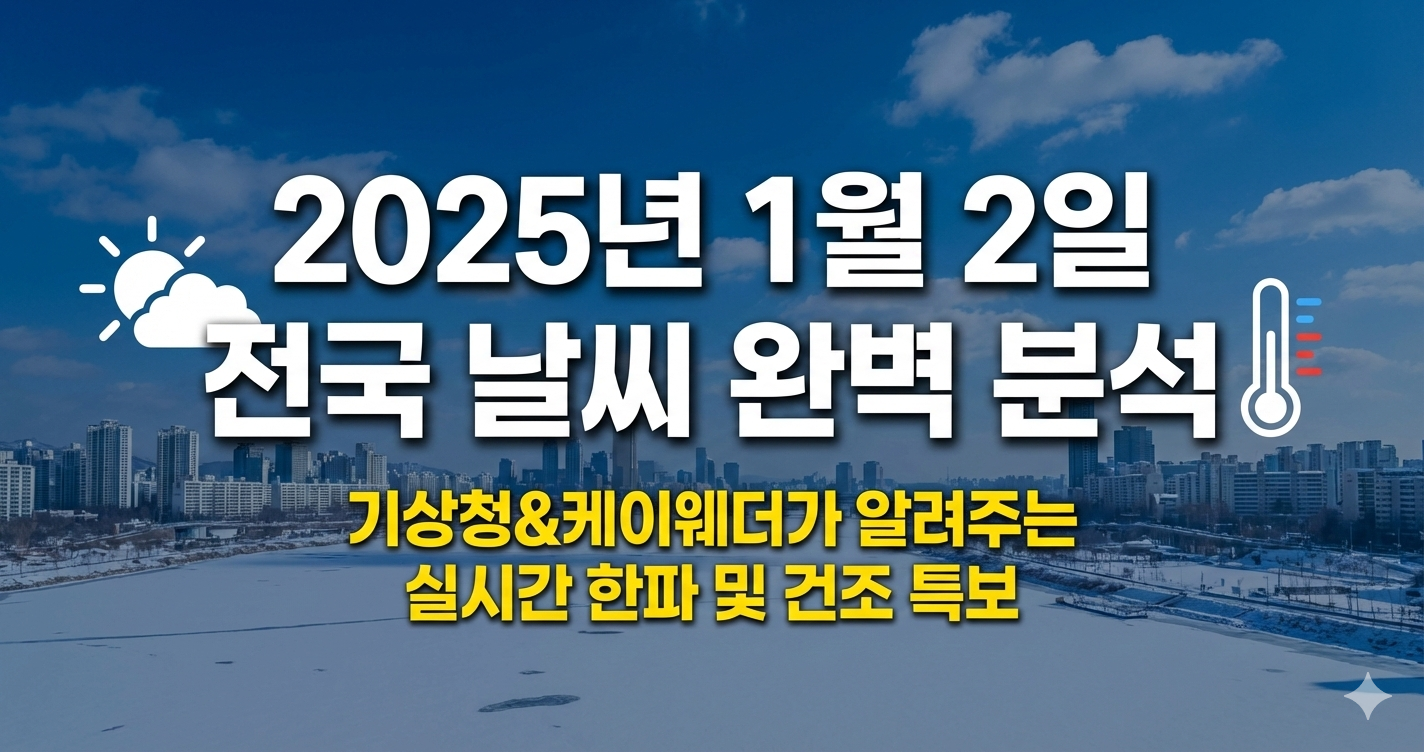 새해 둘째 날인 2025년 1월 2일 목요일, 출근길과 외출 계획 세우셨나요? 오늘은 한파의 기세와 건조한 대기가 포인트입니다. 기상청 날씨누리와 케이웨더의 실시간 정보를 바탕으로 꼼꼼하게 정리해 드릴게요! 😊