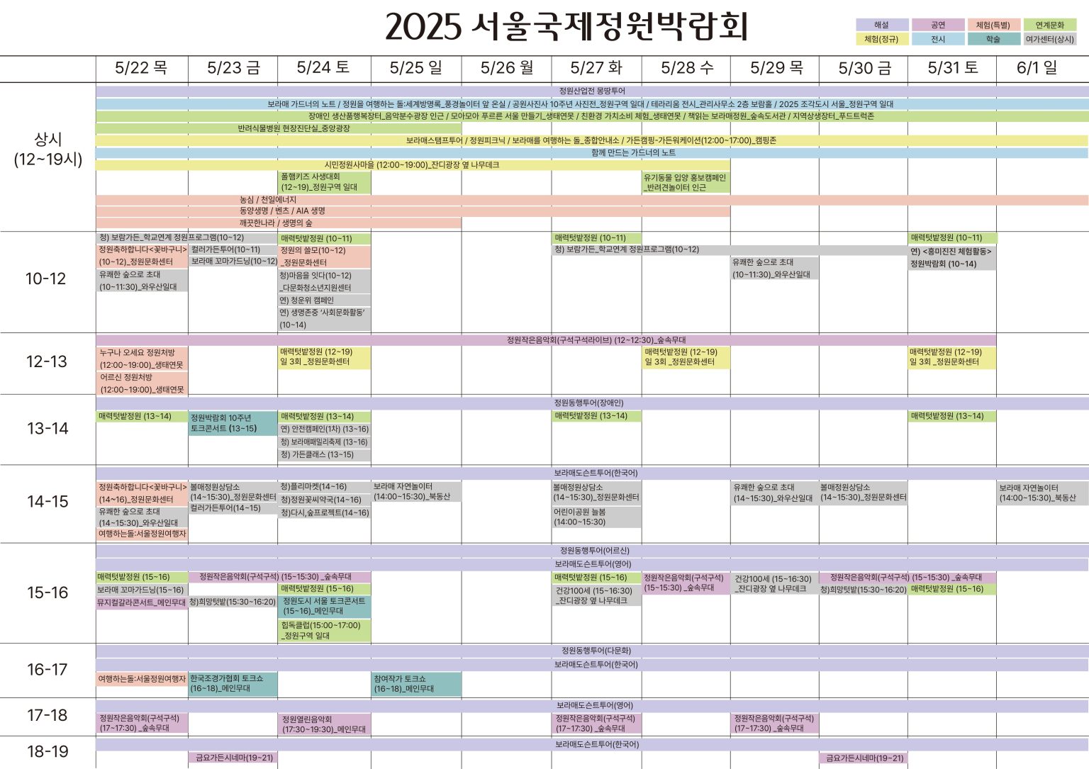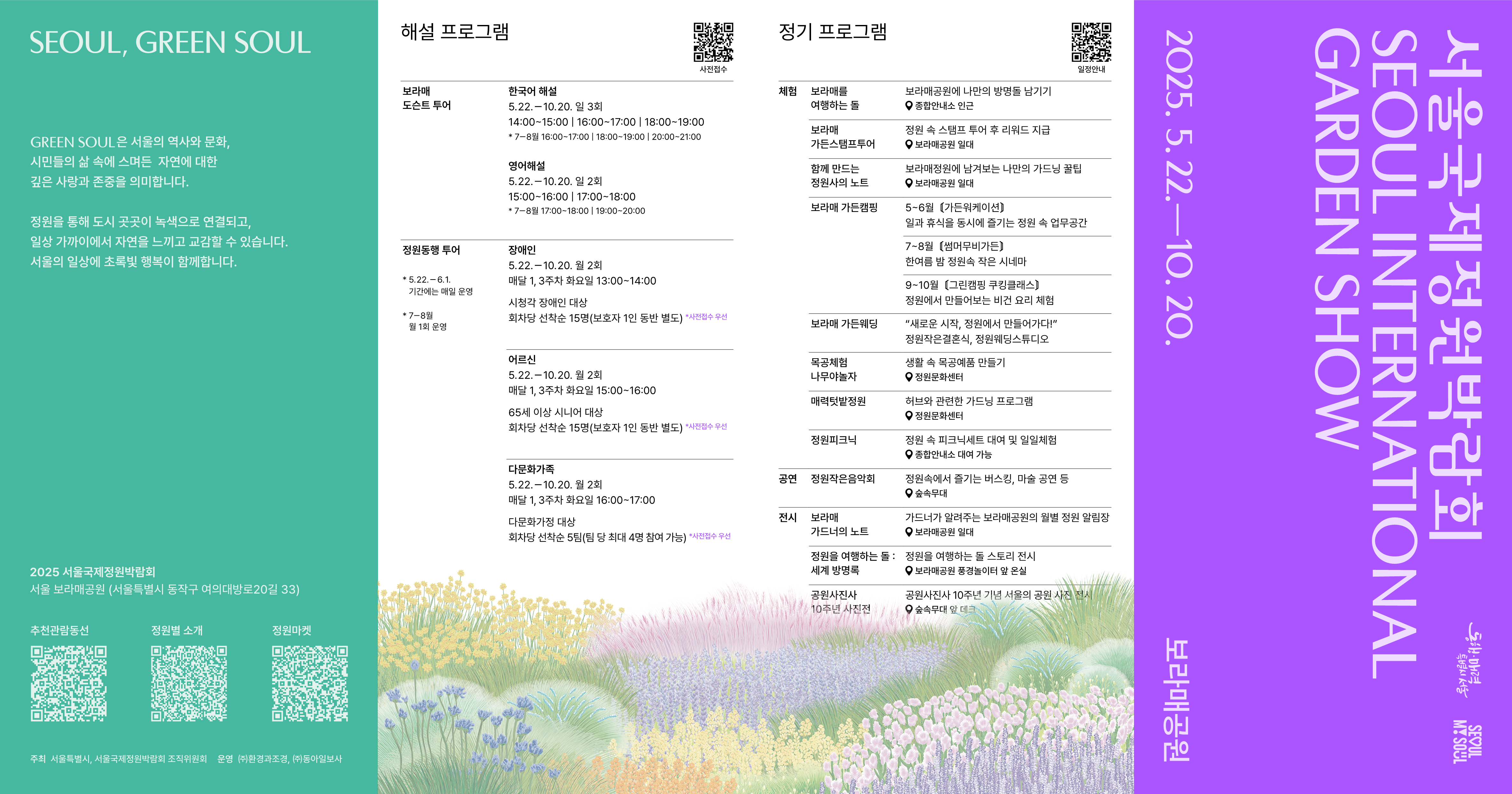 - 2025 서울국제정원박람회는 서울 도심에서 자연, 예술, 문화, 산업을 모두 만날 수 있는 역대 최대 규모의 힐링 페스티벌입니다!