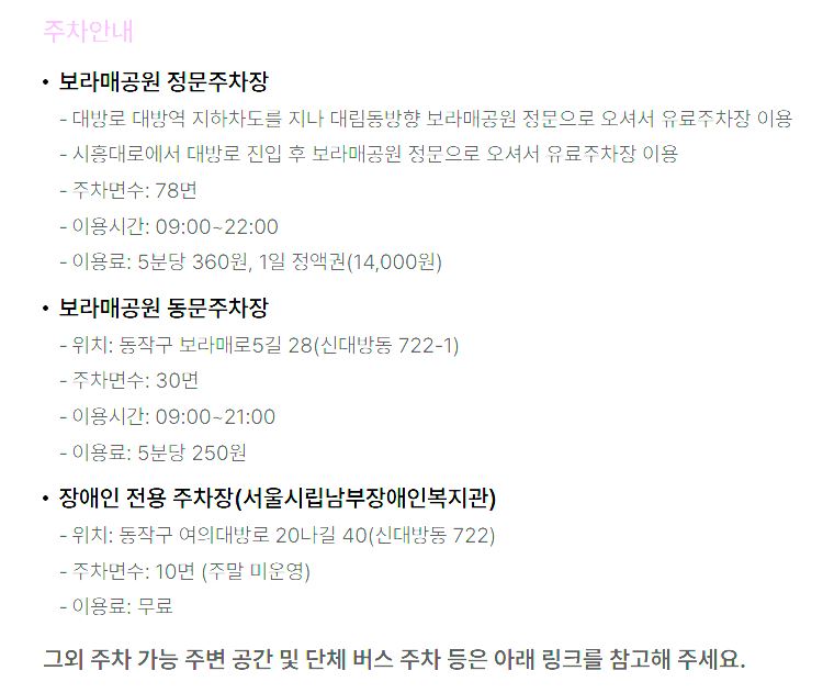 - 장소: 서울 보라매공원 (동작구 여의대방로20길 33)