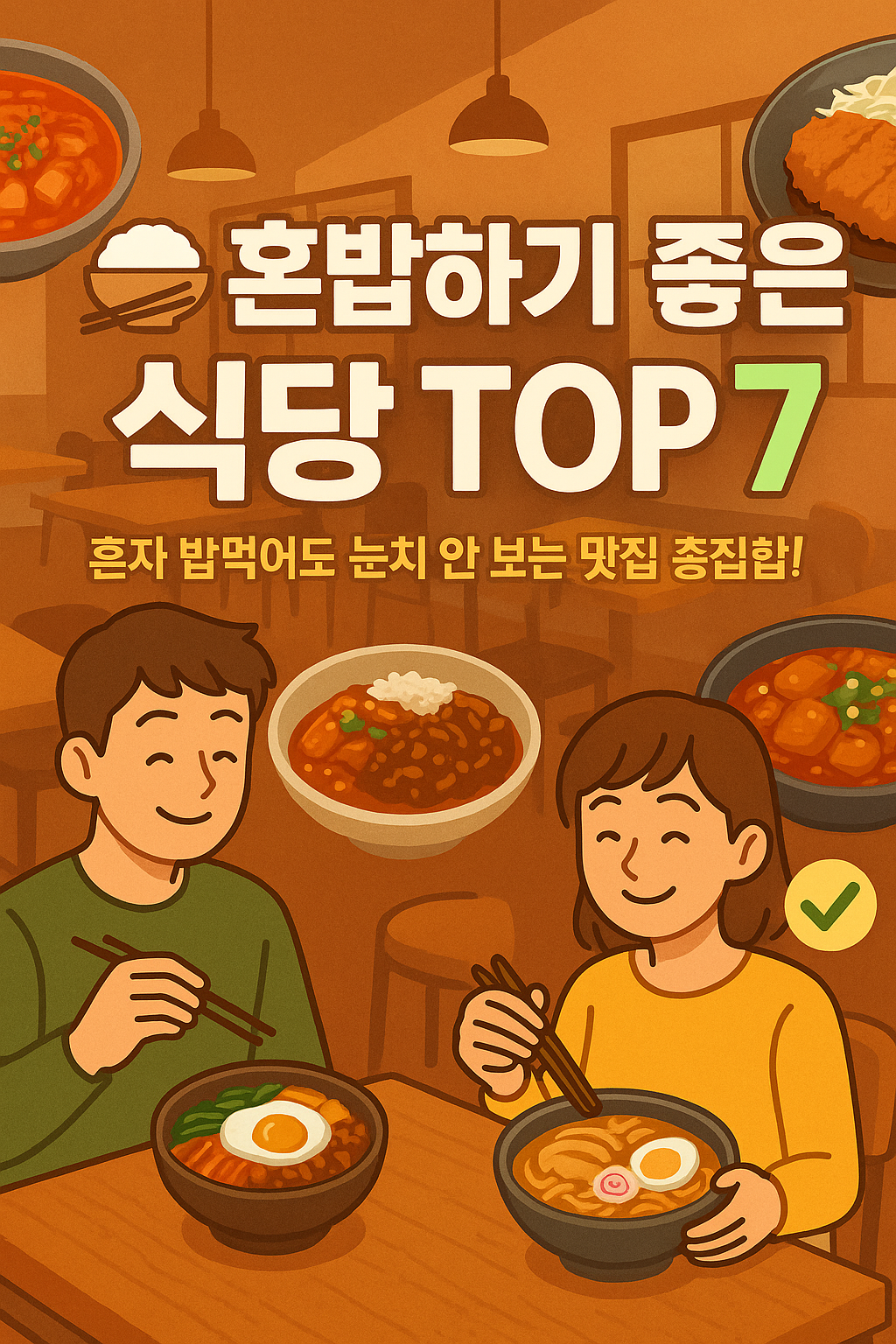 특히 가성비가 좋고 맛도 뛰어난 식당이 많아, 혼밥 초보자도 쉽게 선택할 수 있어요.