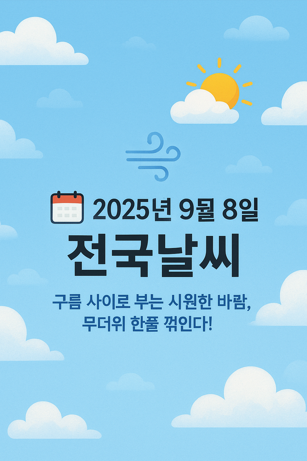📅🌤️ 2025년 9월 8일 전국날씨 | 구름속 시원한 바람, 무더위 한풀 꺾인다! 지금 확인하세요! 🌬️☁️