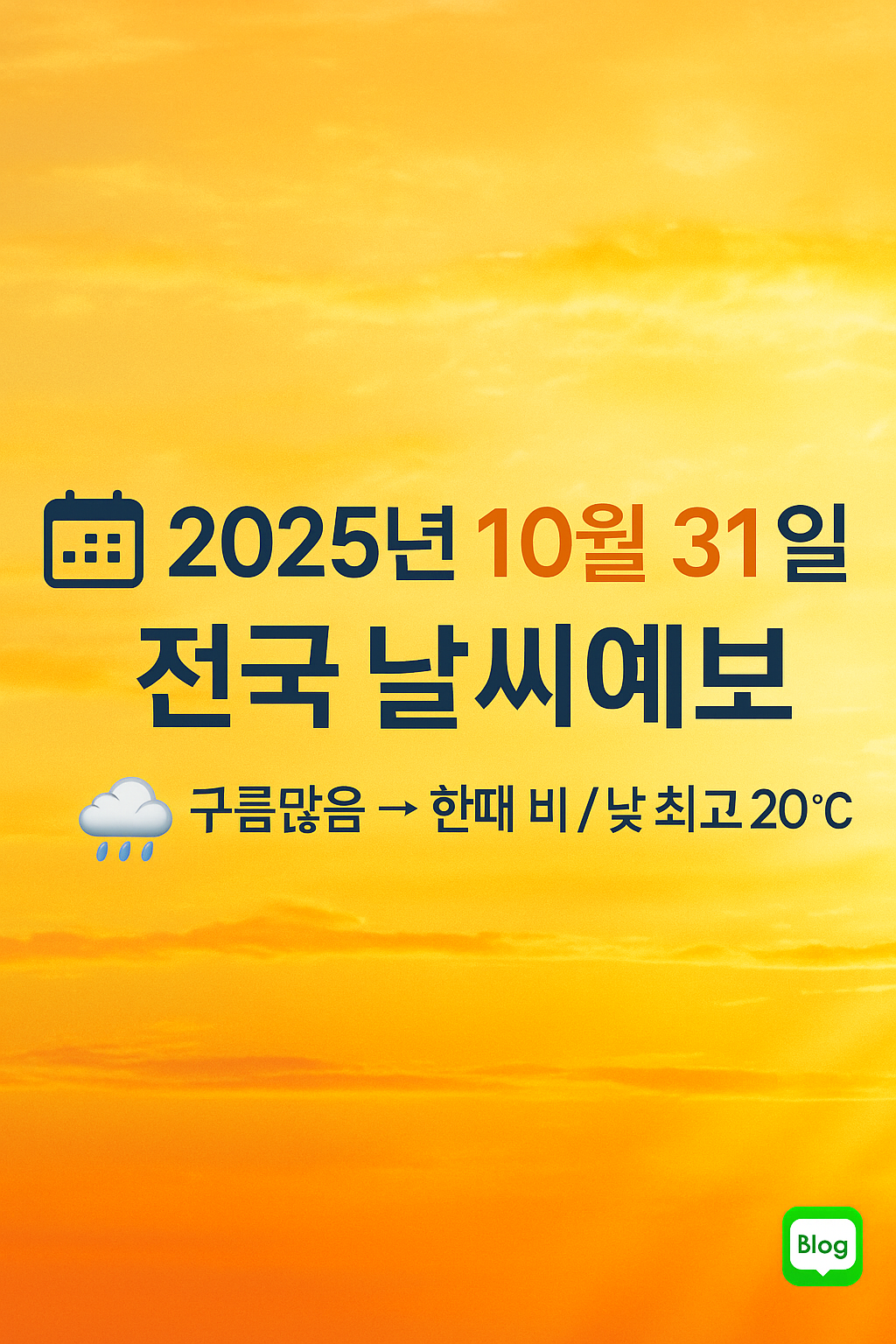 안녕하세요! 😊 다가오는 2025년 10월 31일의 전국 날씨예보를 알려드릴게요. 기준은 국내 공식 예보기관인 기상청 날씨누리와 케이웨더 자료입니다.