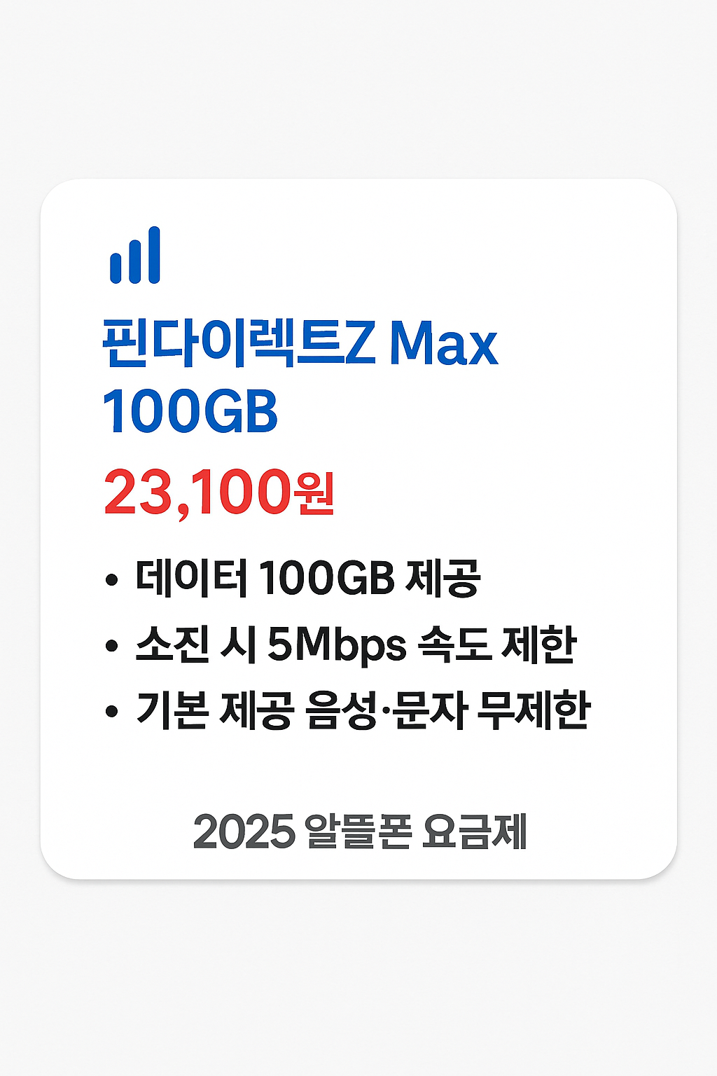 - 데이터: 월 100GB + 소진 시 5Mbps 무제한