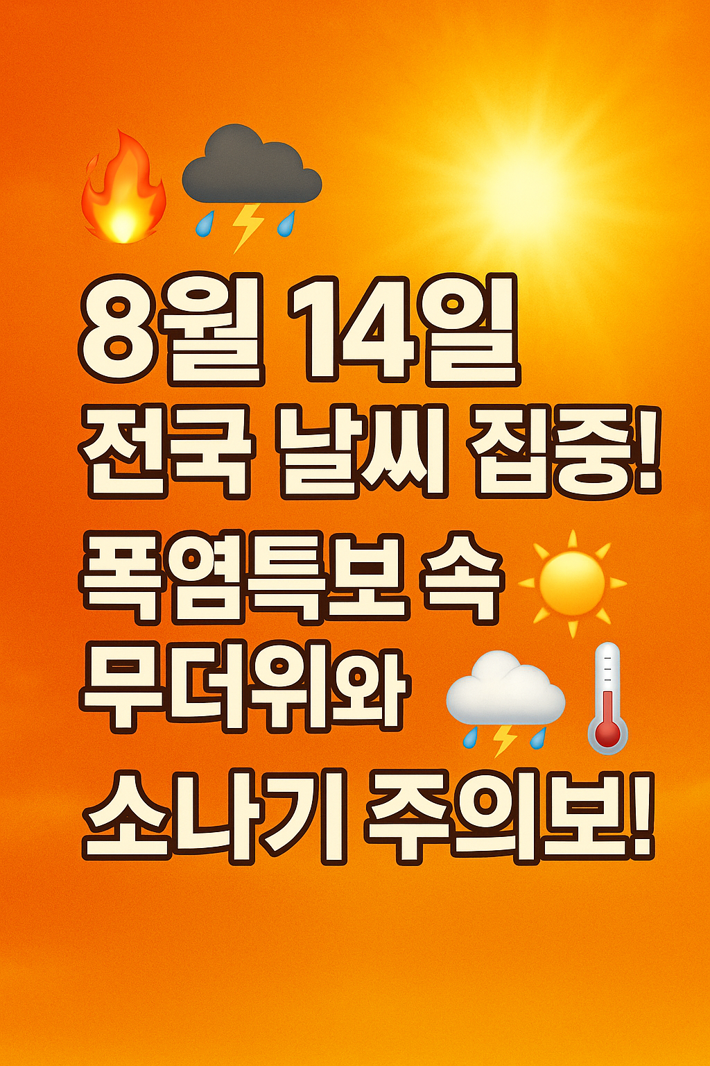 2025년 8월 14일, 전국적으로 폭염특보가 계속되는 가운데, 소나기와 뇌우가 곳곳에서 발생할 것으로 예상됩니다.