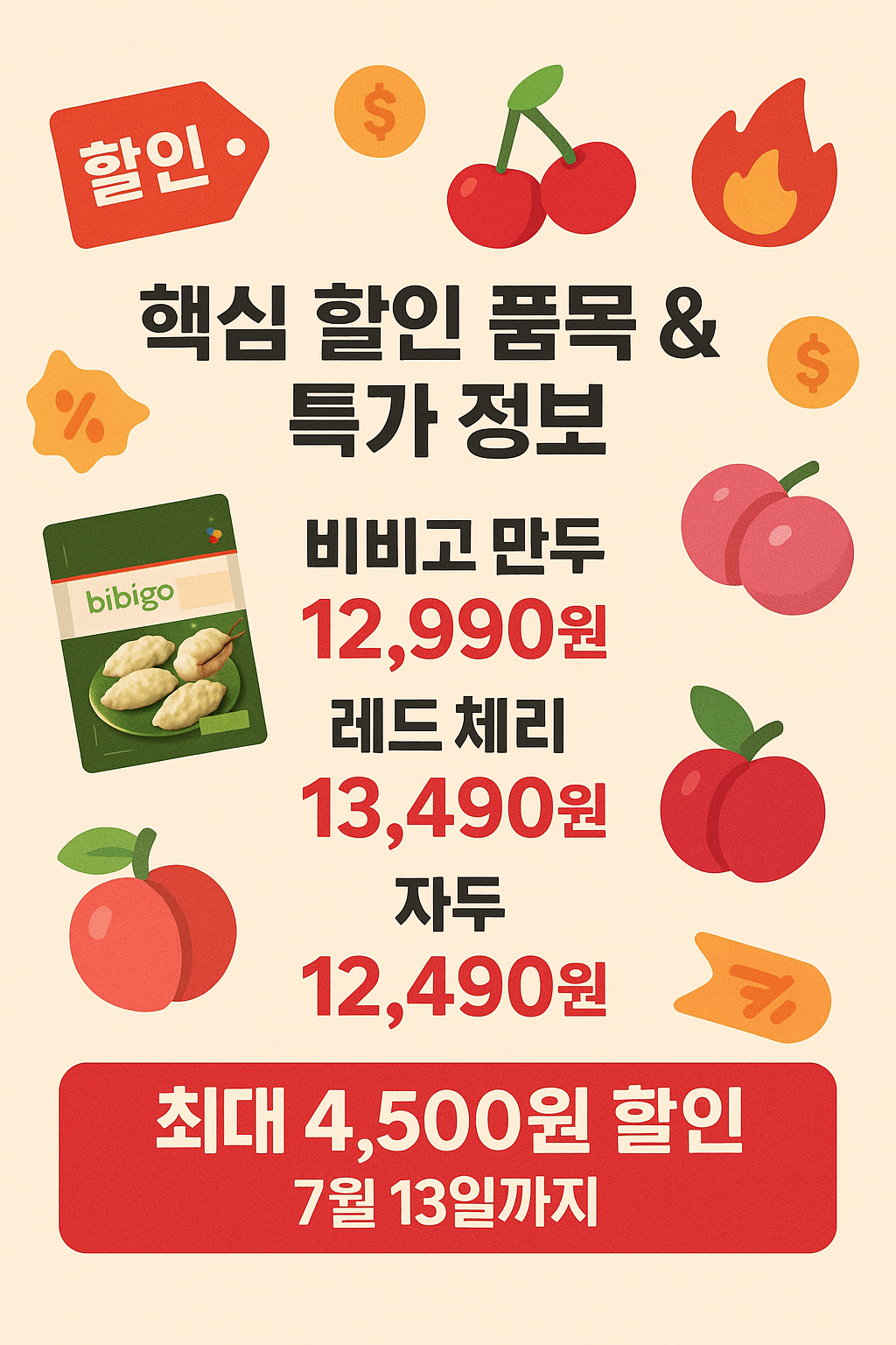 | 비비고 진한김치만두 | 12,990원 | 2,500원 | 7/7 ~ 7/13 |