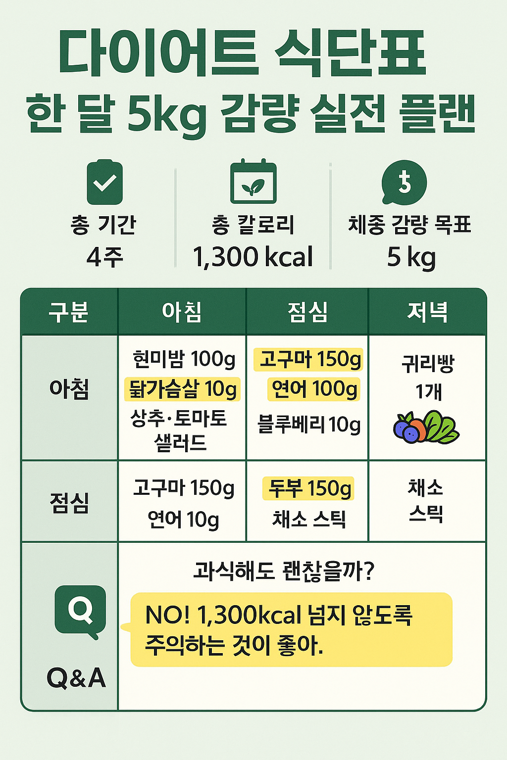 한 달 5kg 감량 다이어트 식단표 🥗
